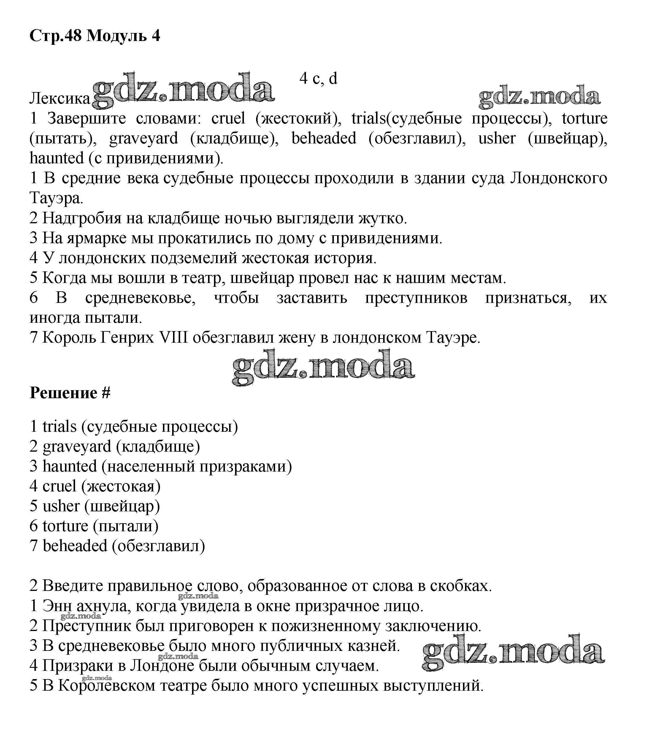 ГДЗ решение к заданию № стр.48 Английский язык 8 класс рабочая тетрадь Starlight Баранова К.М. Просвещение 2015 Углубленный уровень ФГОС бесплатно на гдз.мода!