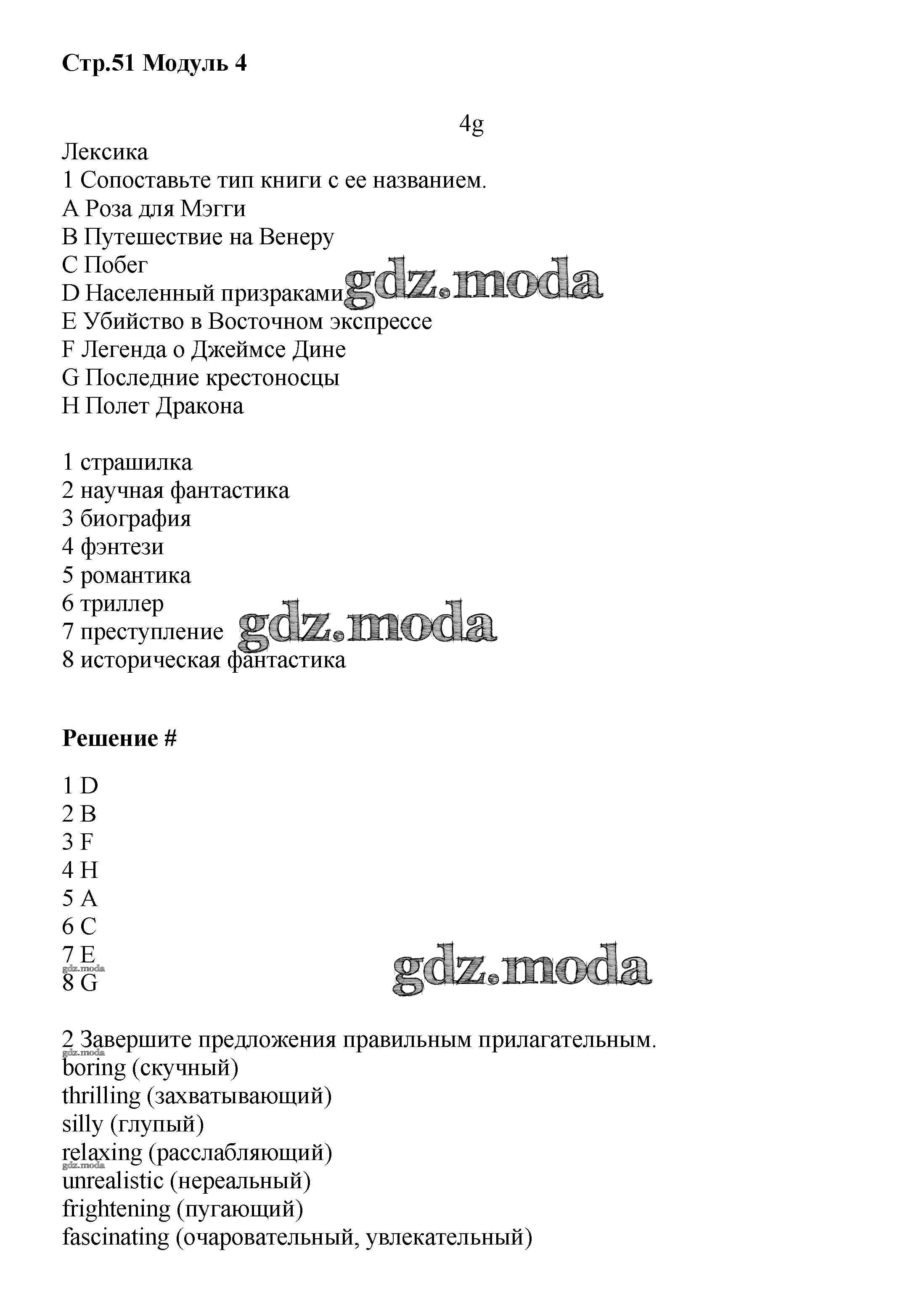 ГДЗ решение к заданию № стр.51 Английский язык 8 класс рабочая тетрадь Starlight Баранова К.М. Просвещение 2015 Углубленный уровень ФГОС бесплатно на гдз.мода!