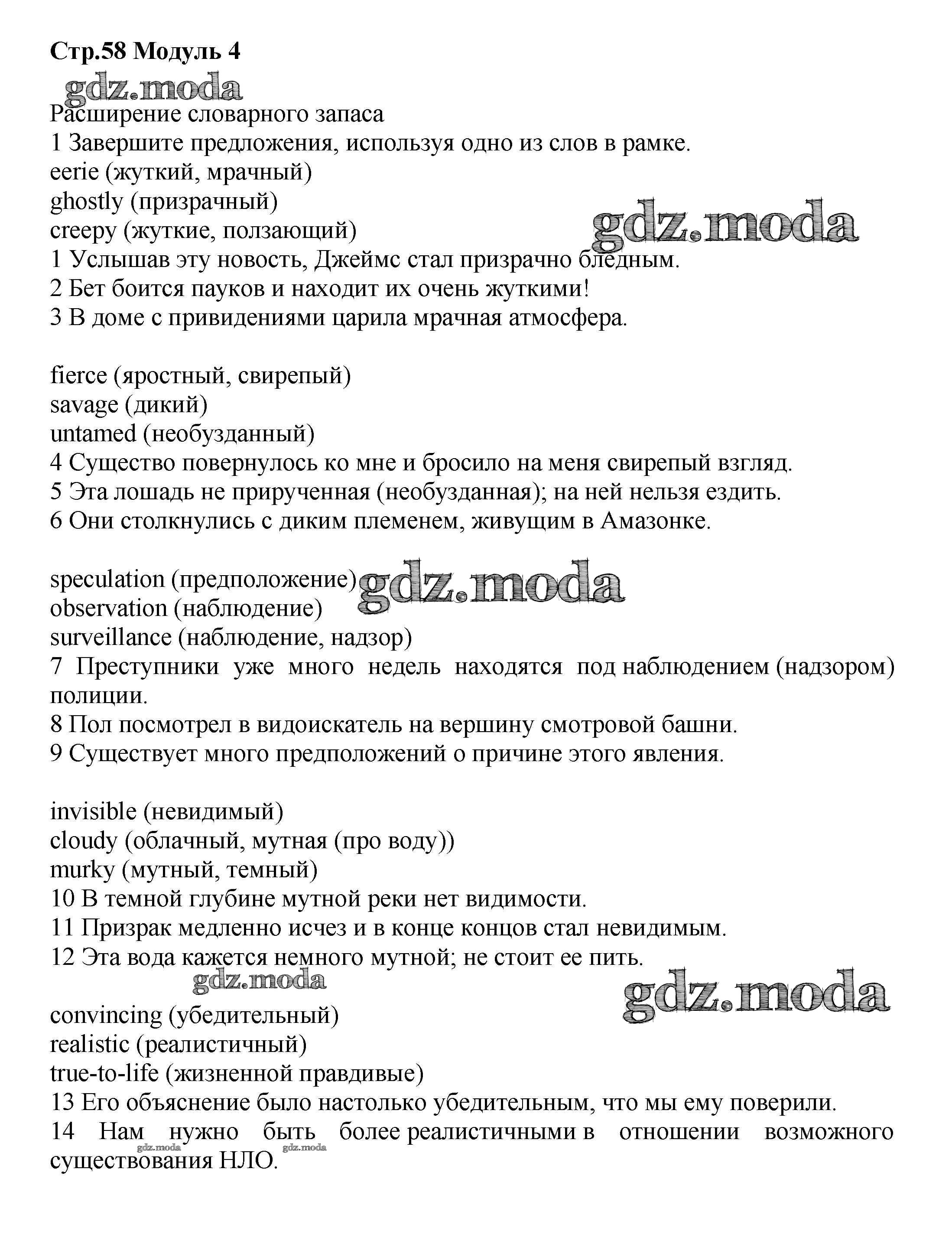 ГДЗ решение к заданию № стр.58 Английский язык 8 класс рабочая тетрадь Starlight Баранова К.М. Просвещение 2015 Углубленный уровень ФГОС бесплатно на гдз.мода!