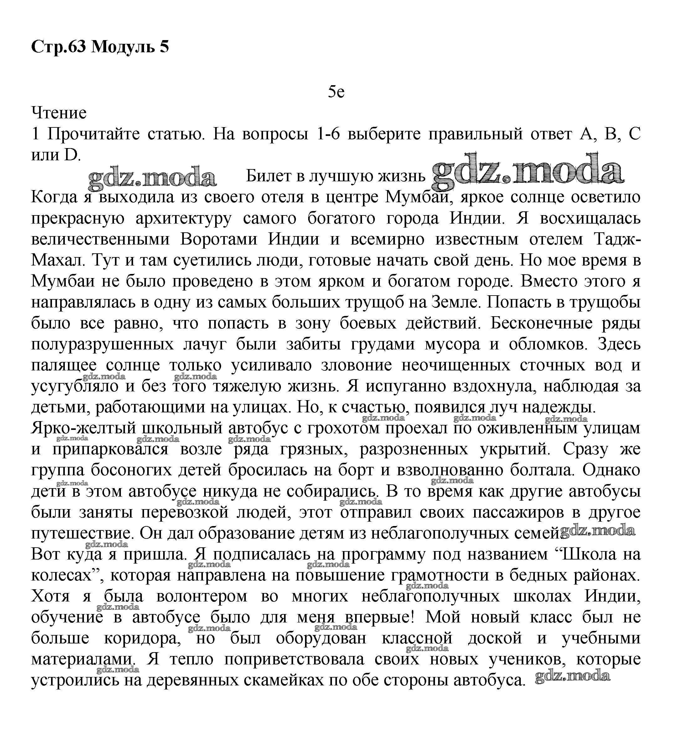 ГДЗ решение к заданию № стр.63 Английский язык 8 класс рабочая тетрадь Starlight Баранова К.М. Просвещение 2015 Углубленный уровень ФГОС бесплатно на гдз.мода!