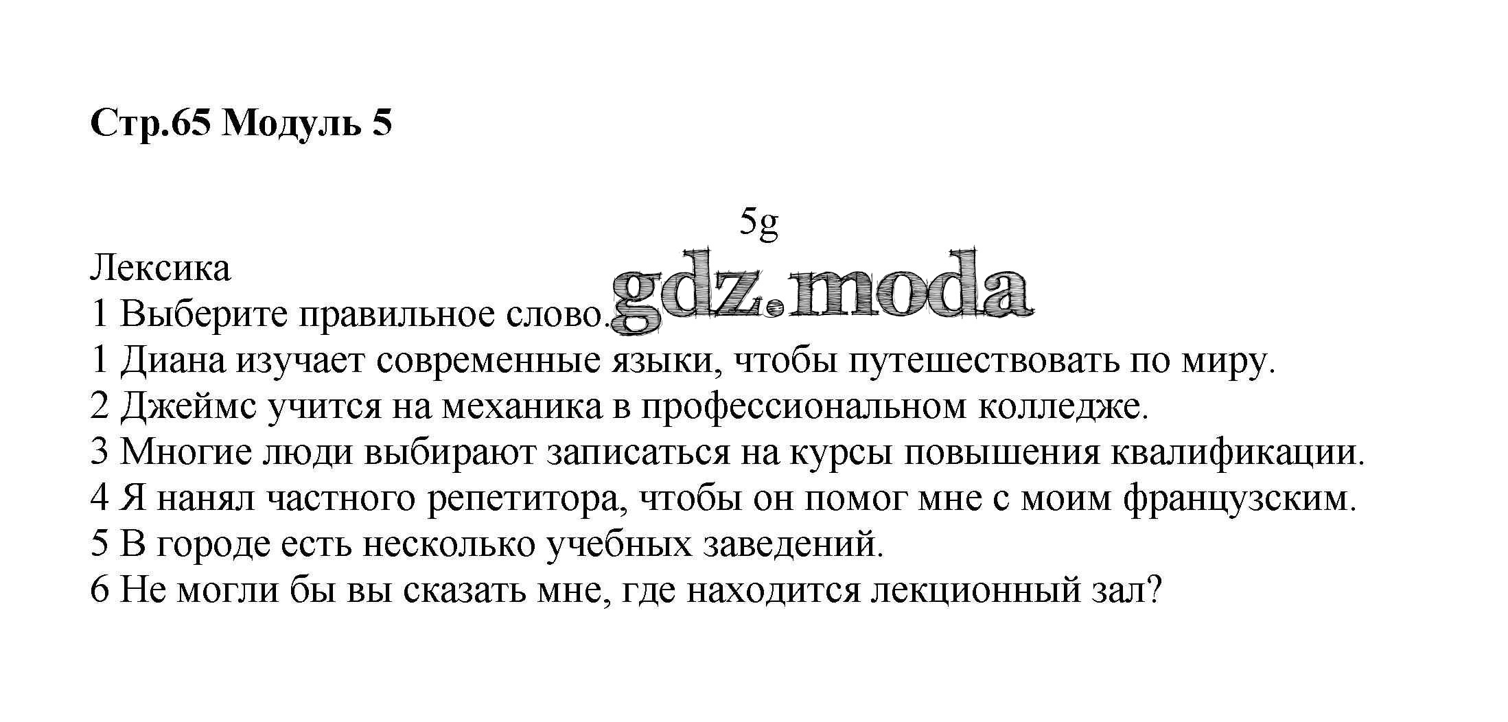 ГДЗ решение к заданию № стр.65 Английский язык 8 класс рабочая тетрадь Starlight Баранова К.М. Просвещение 2015 Углубленный уровень ФГОС бесплатно на гдз.мода!