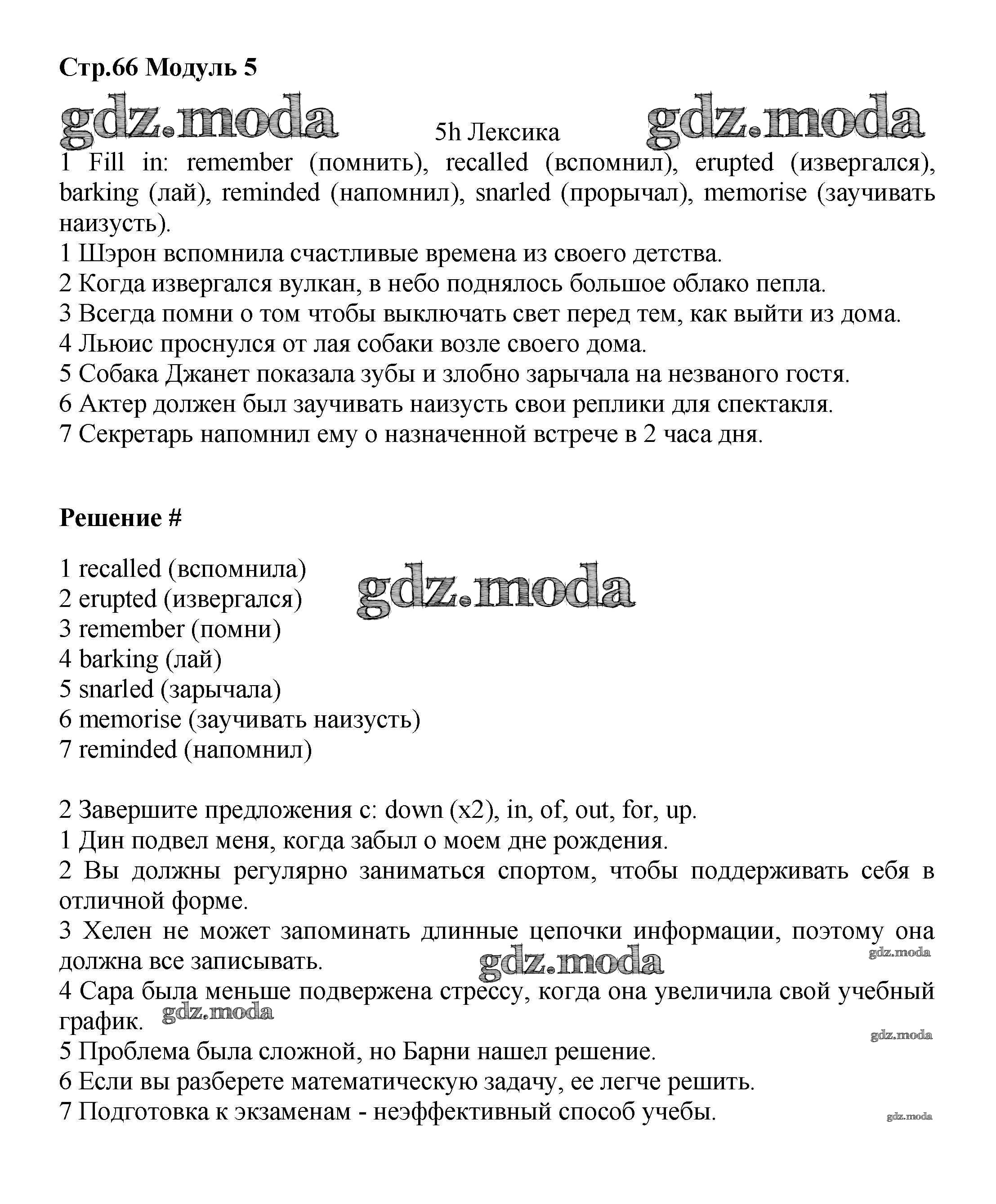 ГДЗ решение к заданию № стр.66 Английский язык 8 класс рабочая тетрадь Starlight Баранова К.М. Просвещение 2015 Углубленный уровень ФГОС бесплатно на гдз.мода!