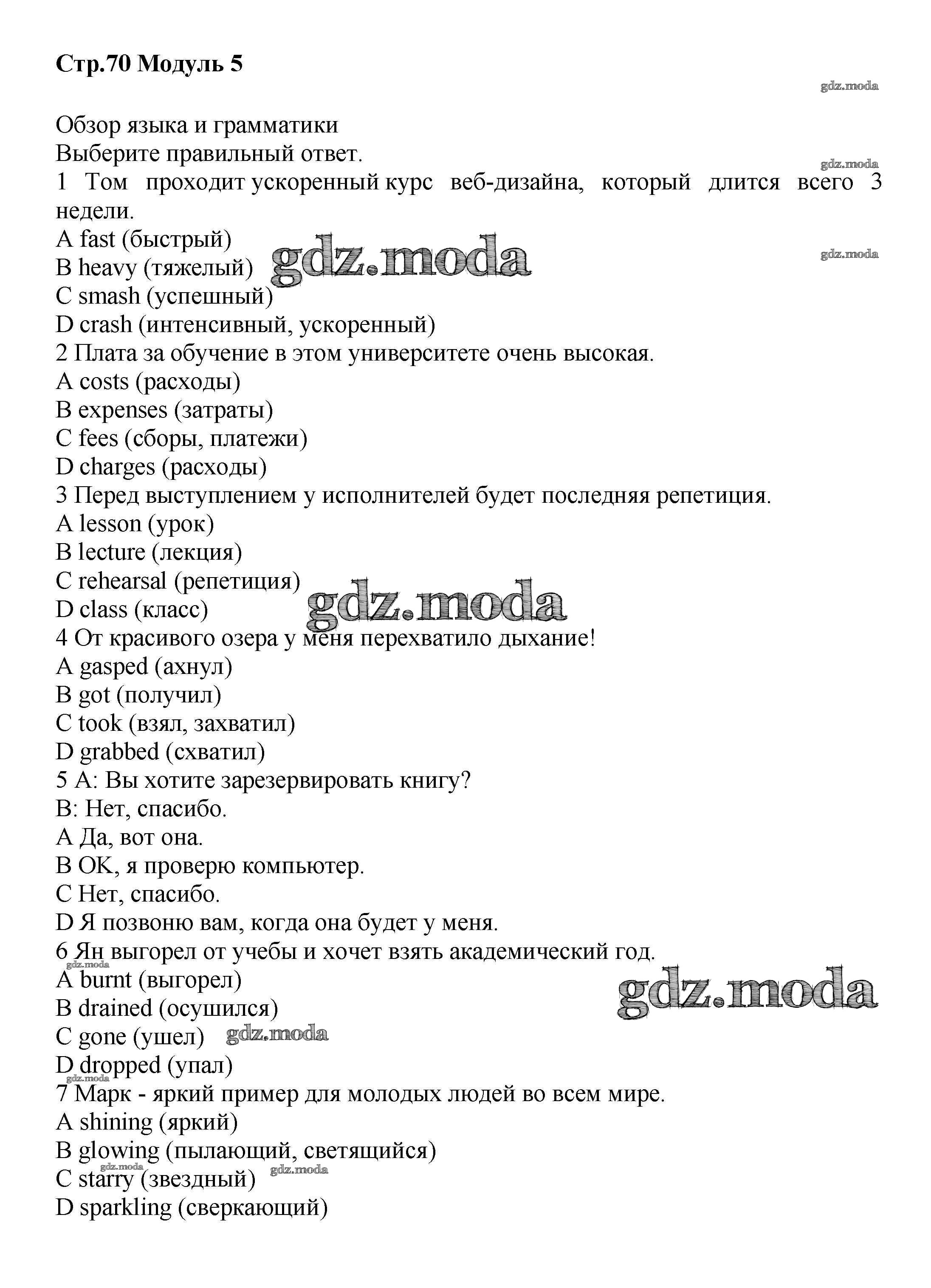ГДЗ решение к заданию № стр.70 Английский язык 8 класс рабочая тетрадь Starlight Баранова К.М. Просвещение 2015 Углубленный уровень ФГОС бесплатно на гдз.мода!