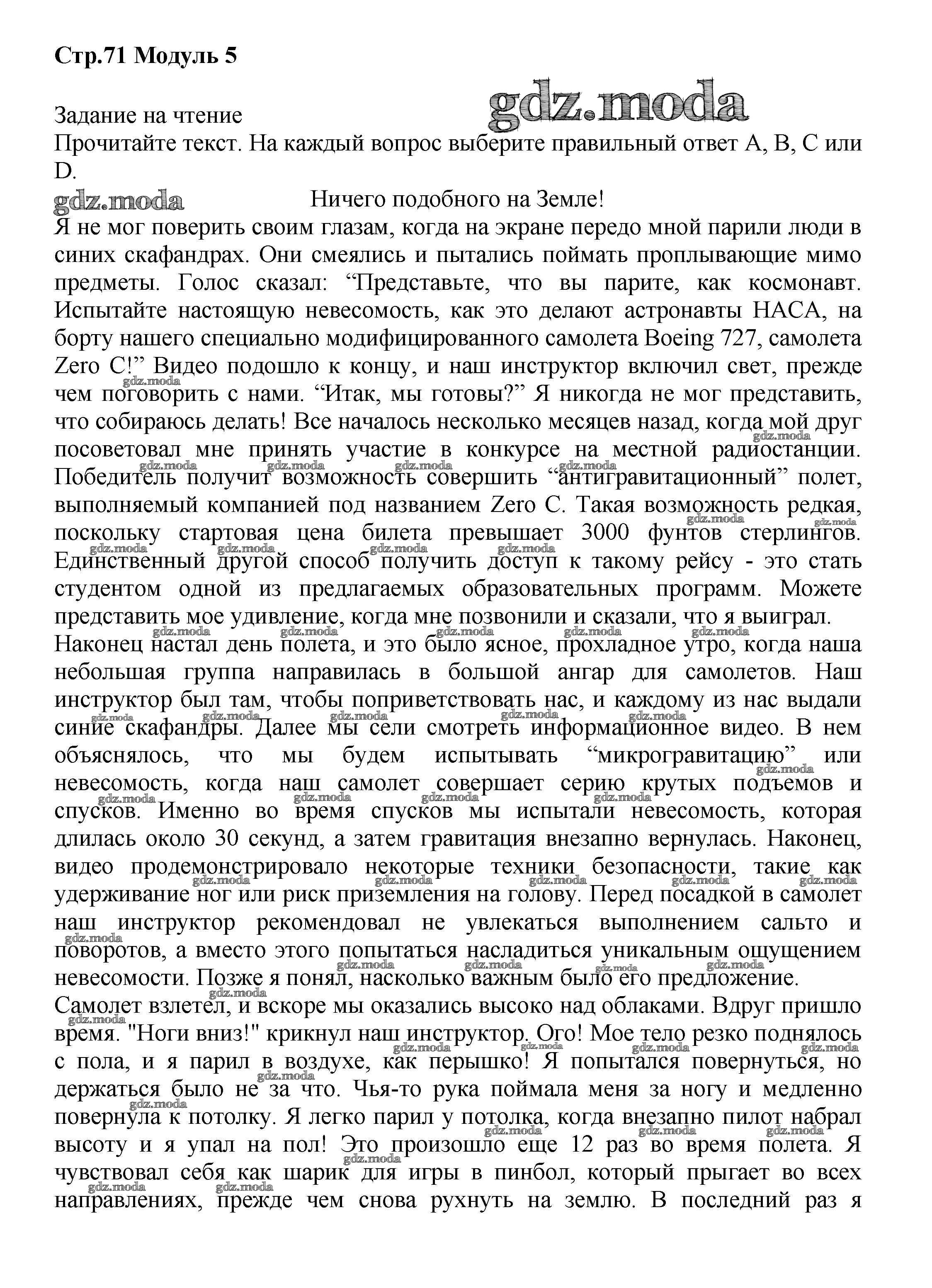 ГДЗ решение к заданию № стр.71 Английский язык 8 класс рабочая тетрадь Starlight Баранова К.М. Просвещение 2015 Углубленный уровень ФГОС бесплатно на гдз.мода!