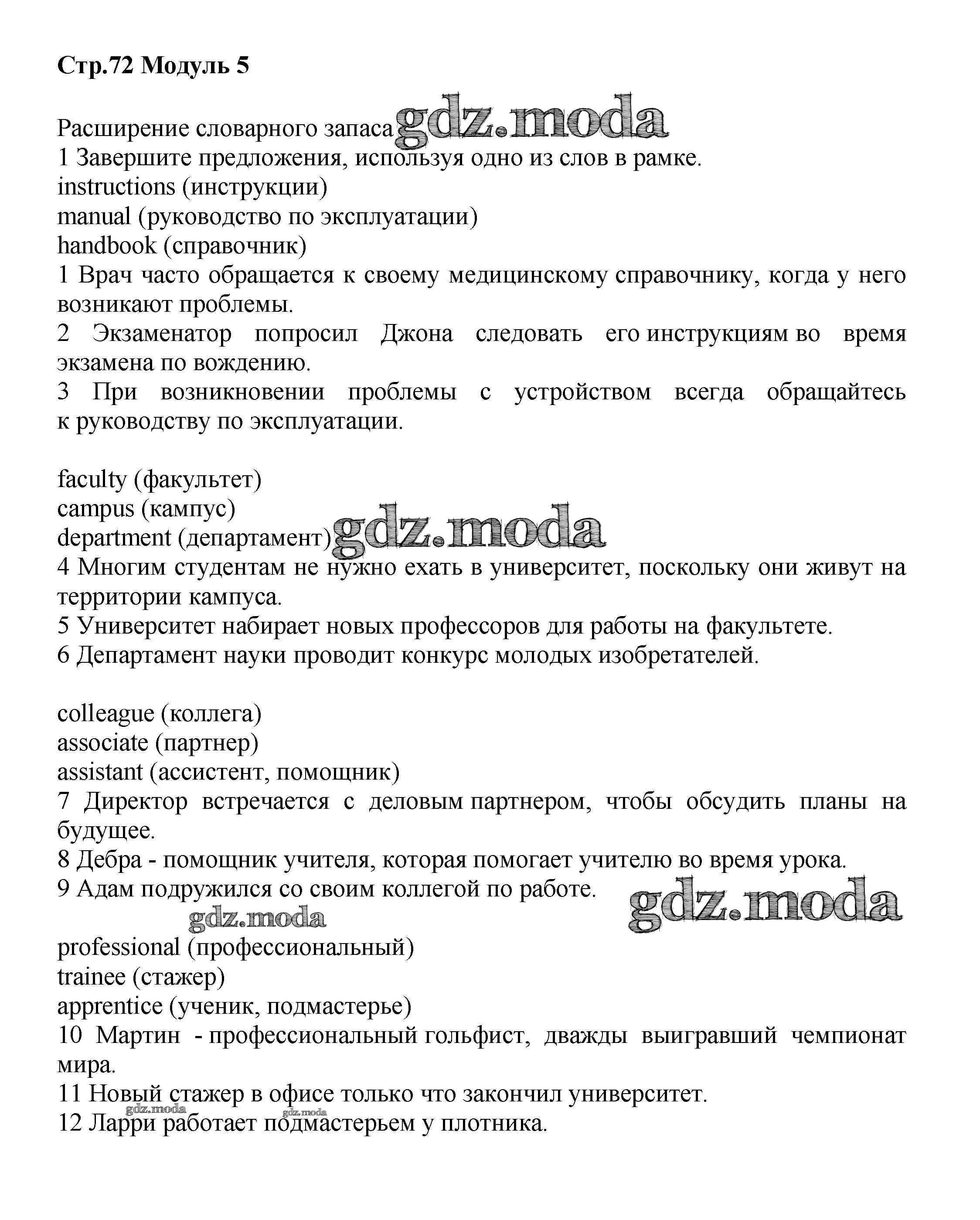 ГДЗ решение к заданию № стр.72 Английский язык 8 класс рабочая тетрадь Starlight Баранова К.М. Просвещение 2015 Углубленный уровень ФГОС бесплатно на гдз.мода!