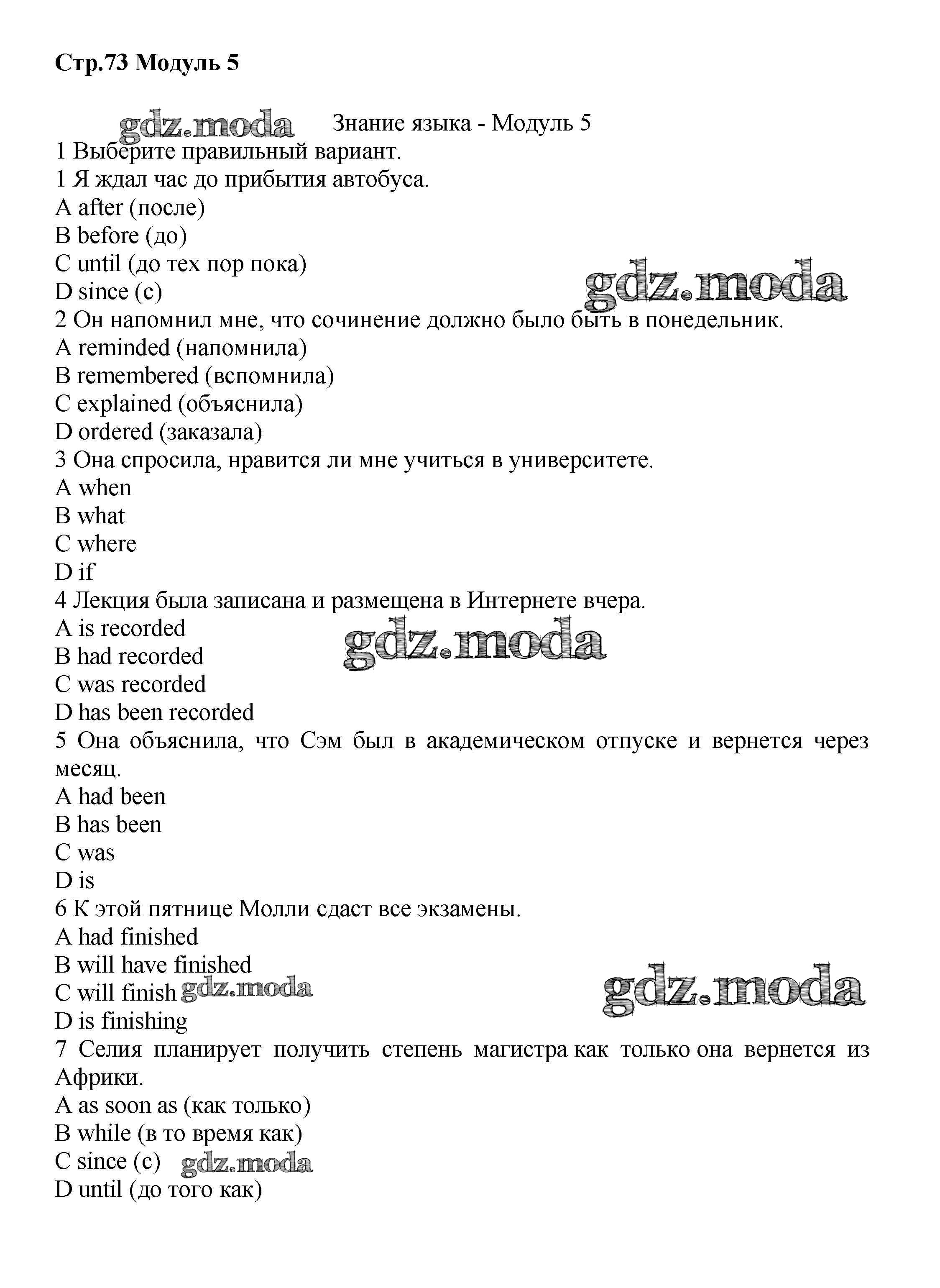ГДЗ решение к заданию № стр.73 Английский язык 8 класс рабочая тетрадь Starlight Баранова К.М. Просвещение 2015 Углубленный уровень ФГОС бесплатно на гдз.мода!
