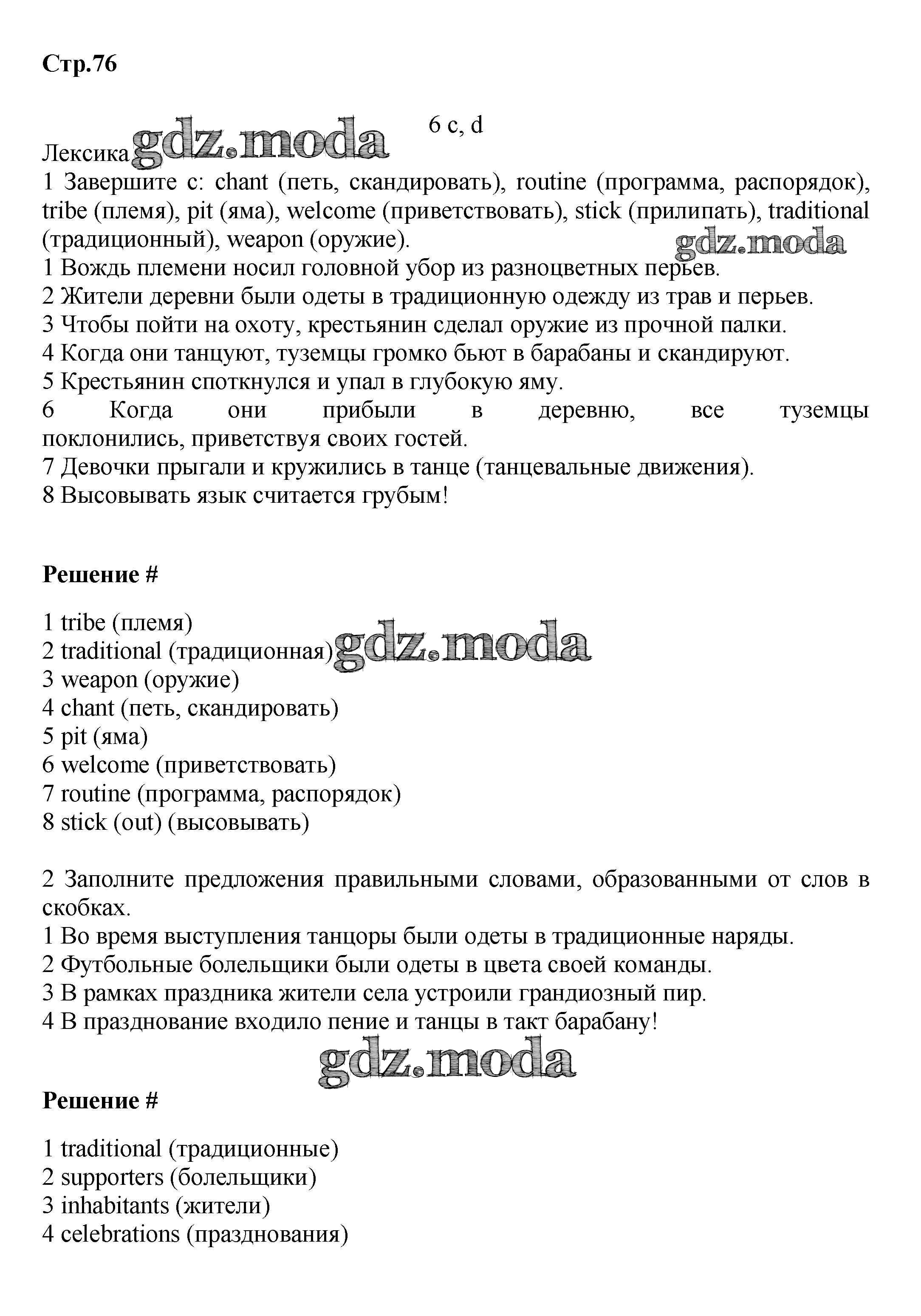 ГДЗ решение к заданию № стр.76 Английский язык 8 класс рабочая тетрадь Starlight Баранова К.М. Просвещение 2015 Углубленный уровень ФГОС бесплатно на гдз.мода!