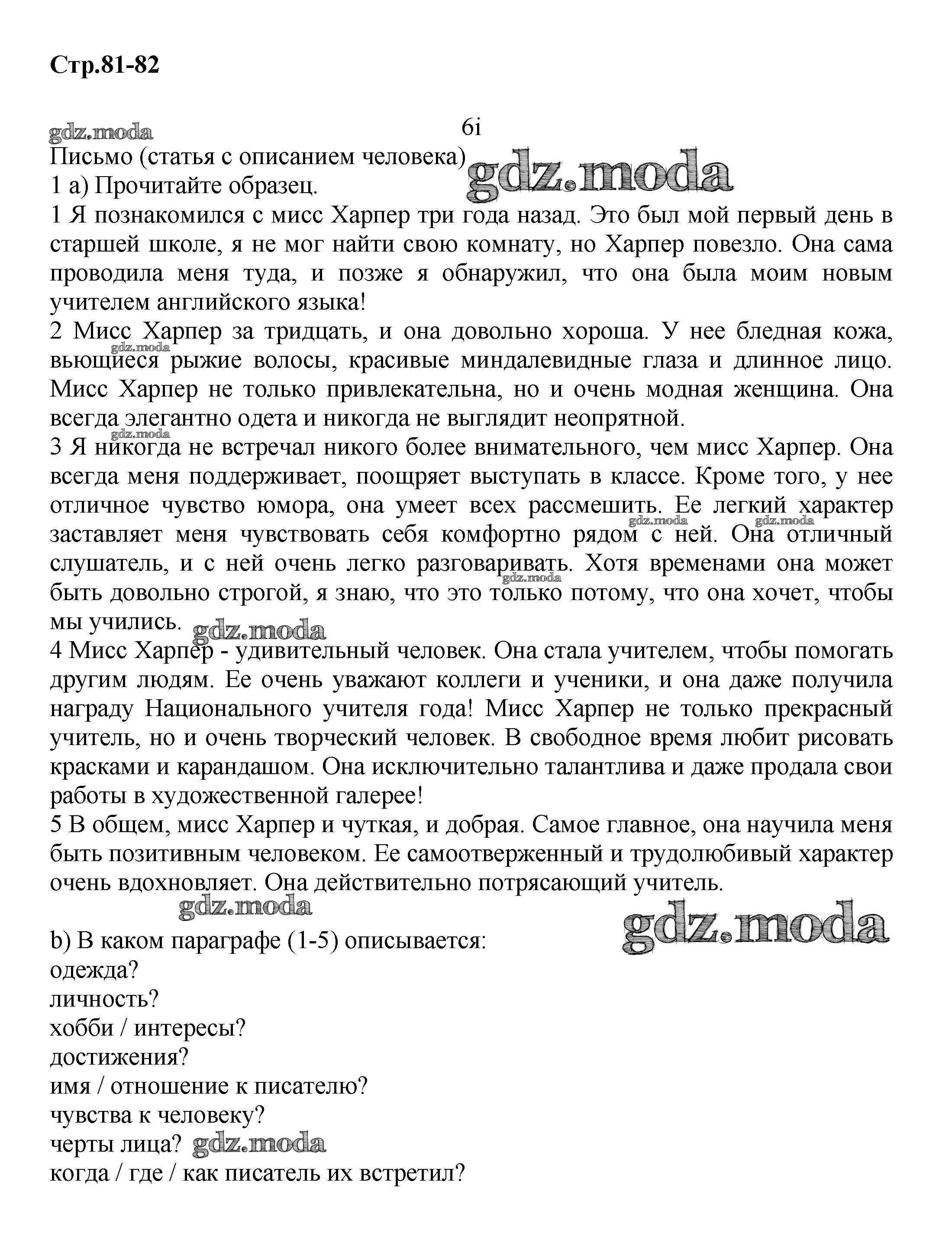 ГДЗ решение к заданию № стр.81-82 Английский язык 8 класс рабочая тетрадь Starlight Баранова К.М. Просвещение 2015 Углубленный уровень ФГОС бесплатно на гдз.мода!