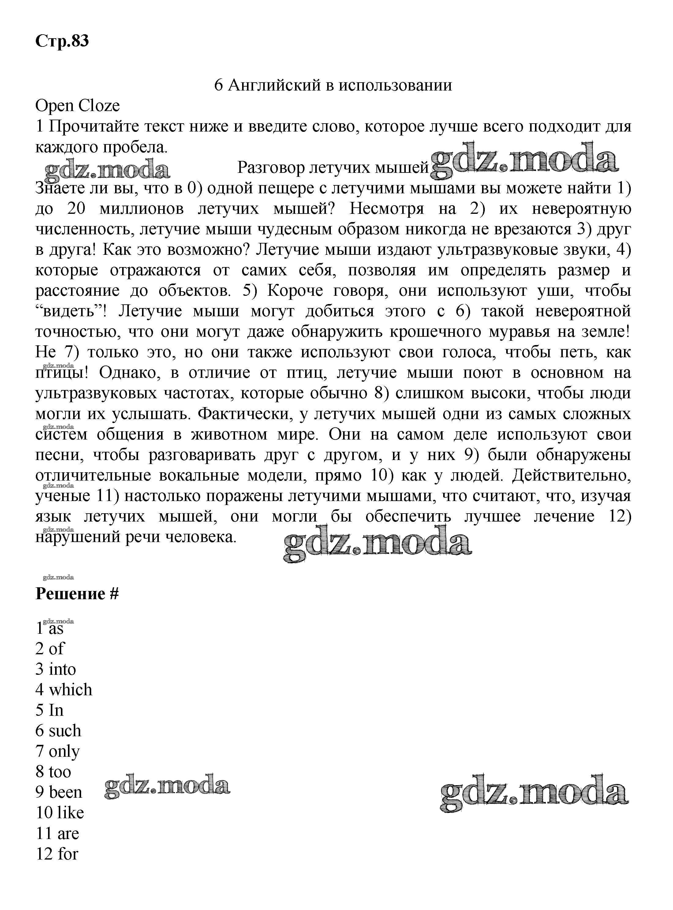 ГДЗ решение к заданию № стр.83 Английский язык 8 класс рабочая тетрадь Starlight Баранова К.М. Просвещение 2015 Углубленный уровень ФГОС бесплатно на гдз.мода!