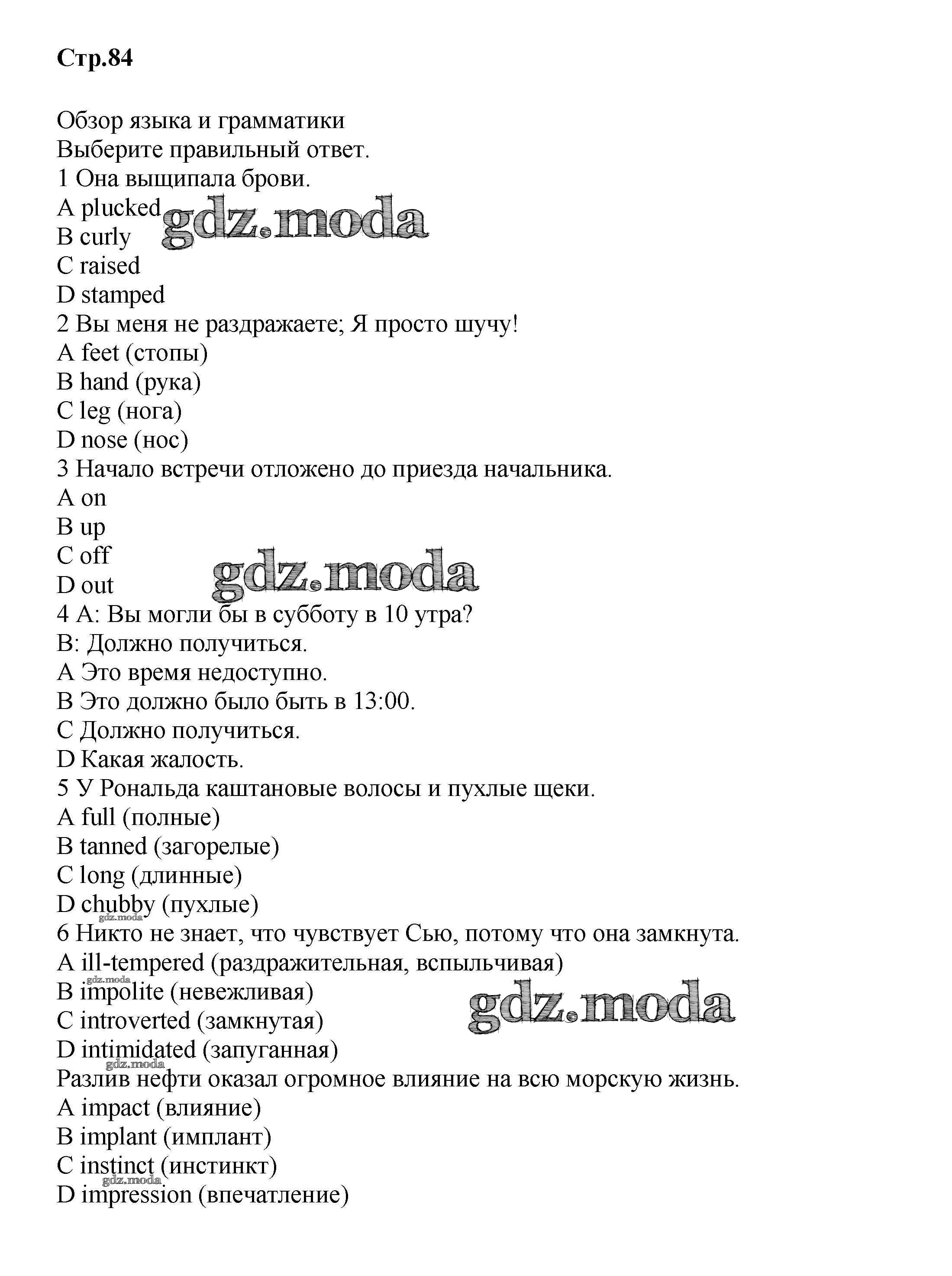 ГДЗ решение к заданию № стр.84 Английский язык 8 класс рабочая тетрадь Starlight Баранова К.М. Просвещение 2015 Углубленный уровень ФГОС бесплатно на гдз.мода!