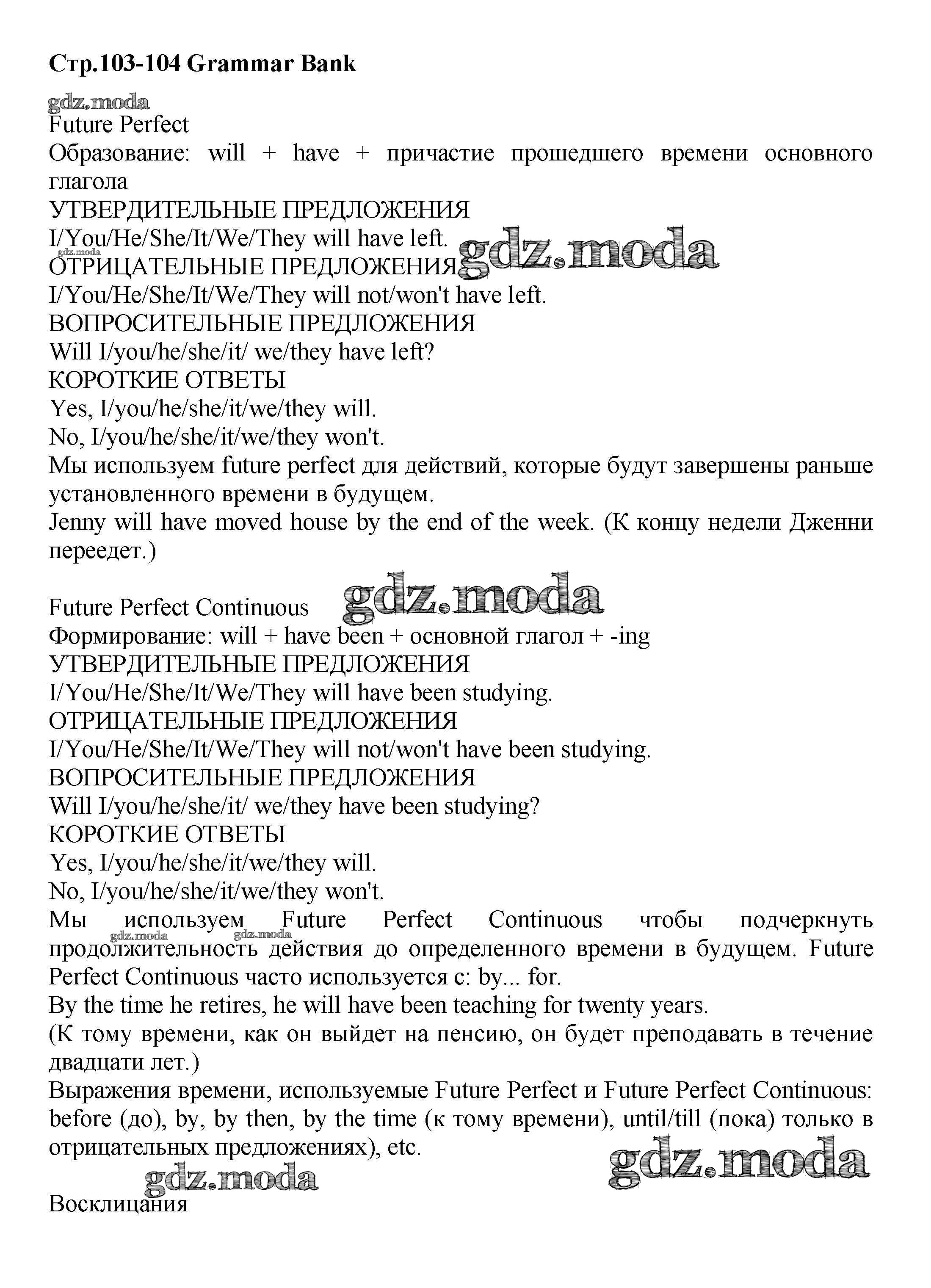 ГДЗ решение к заданию № стр.103-104 Английский язык 8 класс рабочая тетрадь Starlight Баранова К.М. Просвещение 2015 Углубленный уровень ФГОС бесплатно на гдз.мода!
