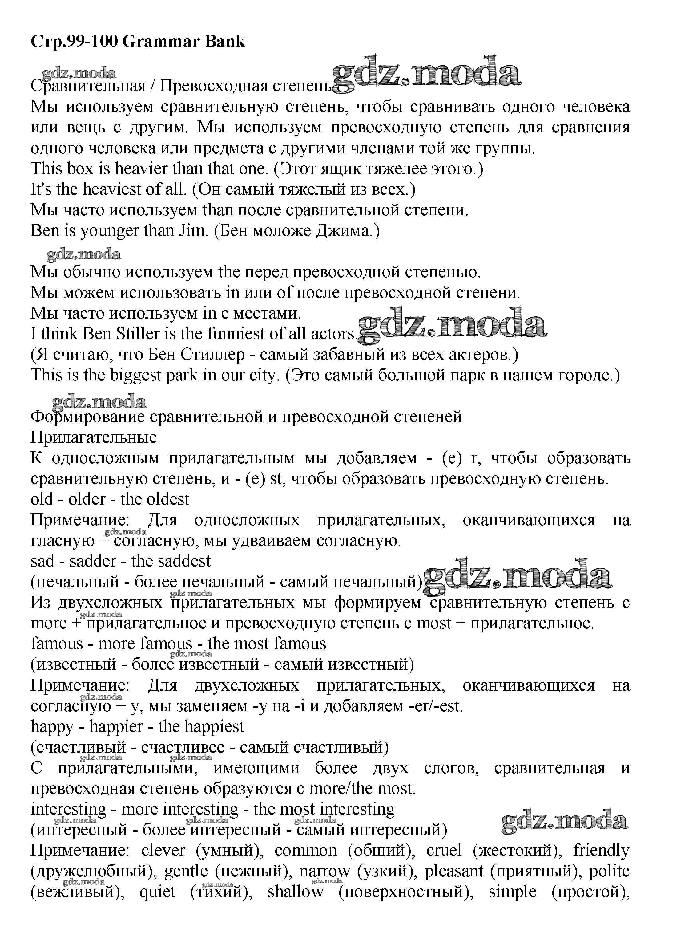 ГДЗ решение к заданию № стр.99-100 Английский язык 8 класс рабочая тетрадь Starlight Баранова К.М. Просвещение 2015 Углубленный уровень ФГОС бесплатно на гдз.мода!