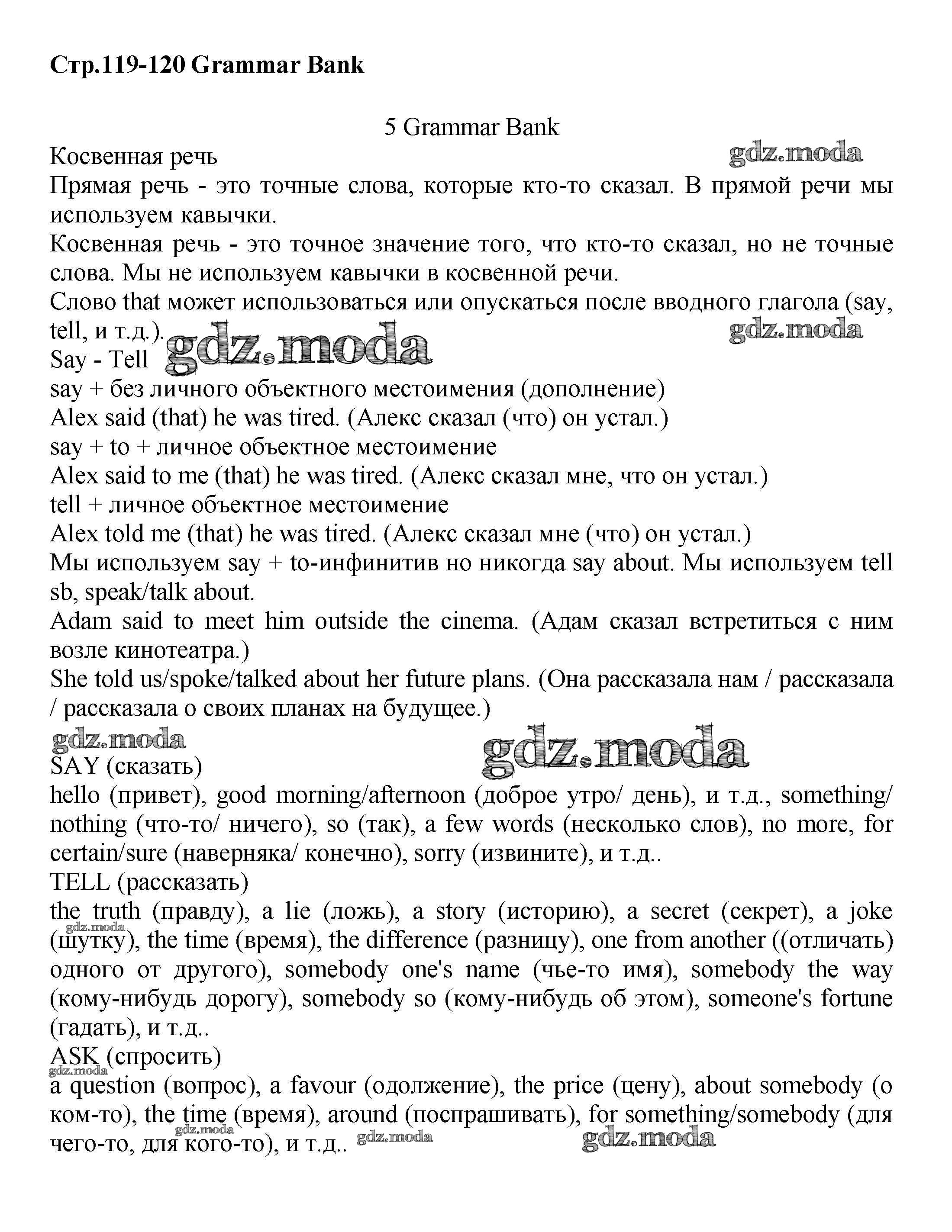 ГДЗ решение к заданию № стр.119-120 Английский язык 8 класс рабочая тетрадь Starlight Баранова К.М. Просвещение 2015 Углубленный уровень ФГОС бесплатно на гдз.мода!