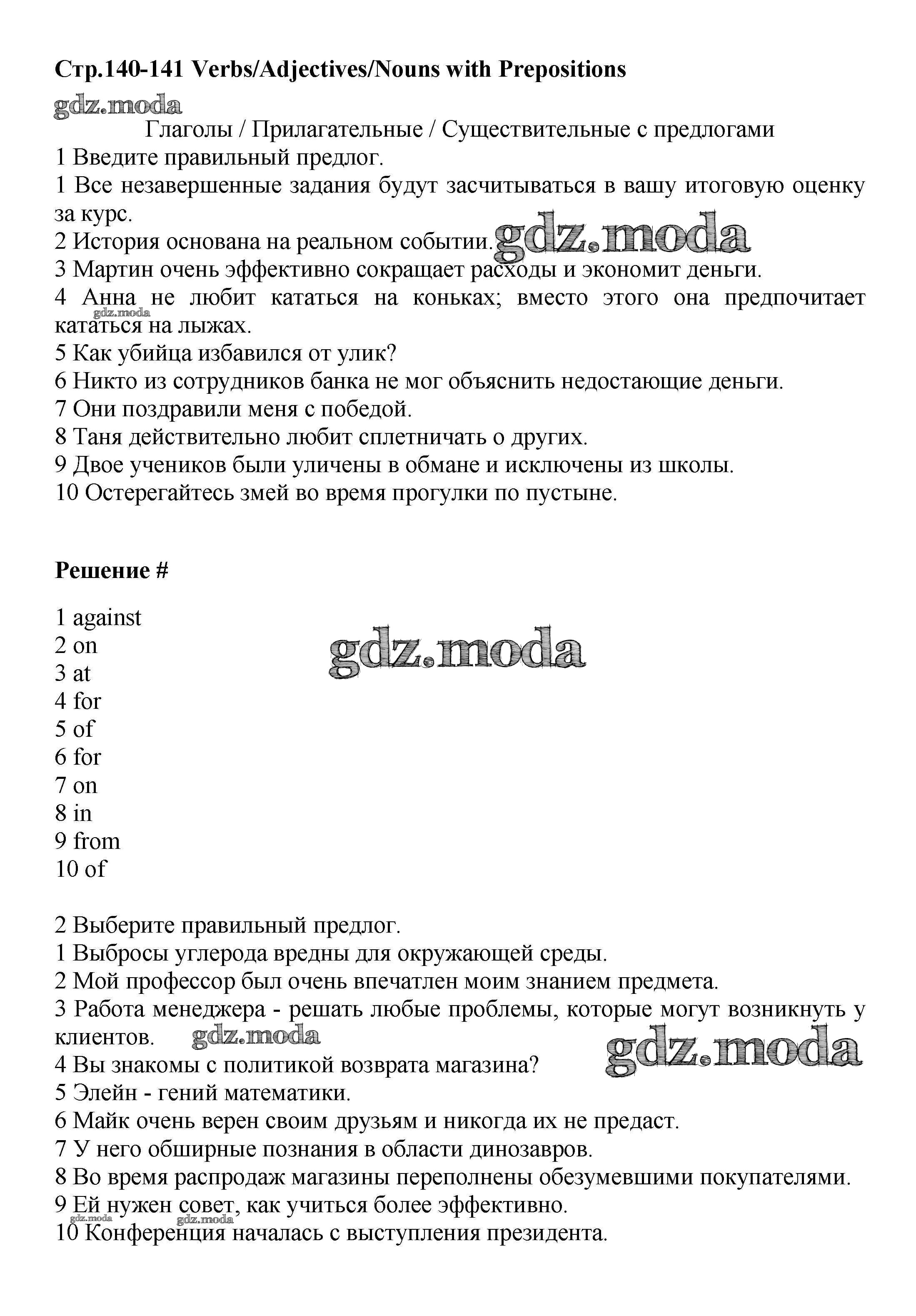 grammar bank / verbs/adjectives/nouns with prepositions / стр.140-141