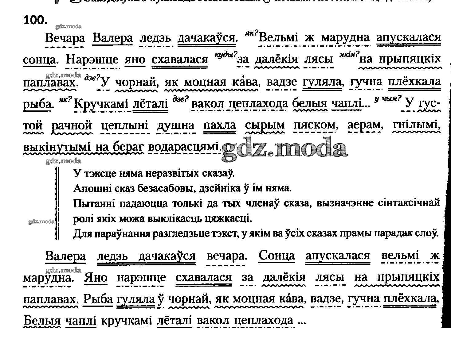 ГДЗ решение к заданию № 100 Белоруская мова 8 класс Бадзевіч З.І. Национальный институт образования 2015 ФГОС бесплатно на гдз.мода!