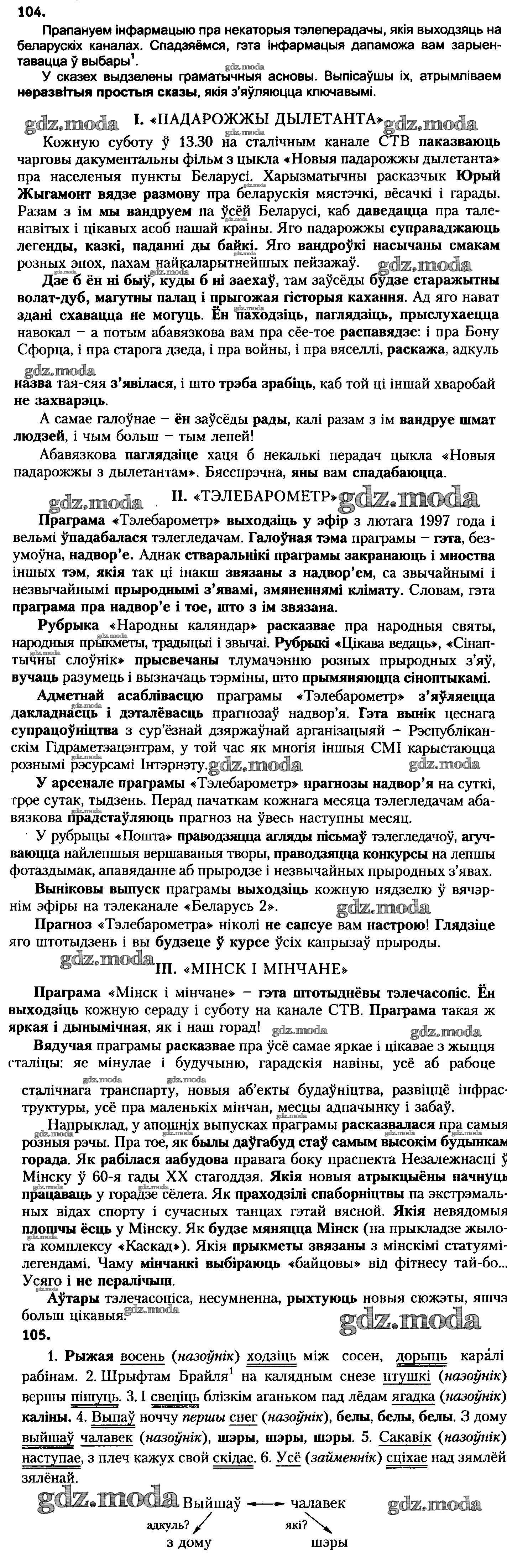 ГДЗ решение к заданию № 104 Белоруская мова 8 класс Бадзевіч З.І. Национальный институт образования 2015 ФГОС бесплатно на гдз.мода!