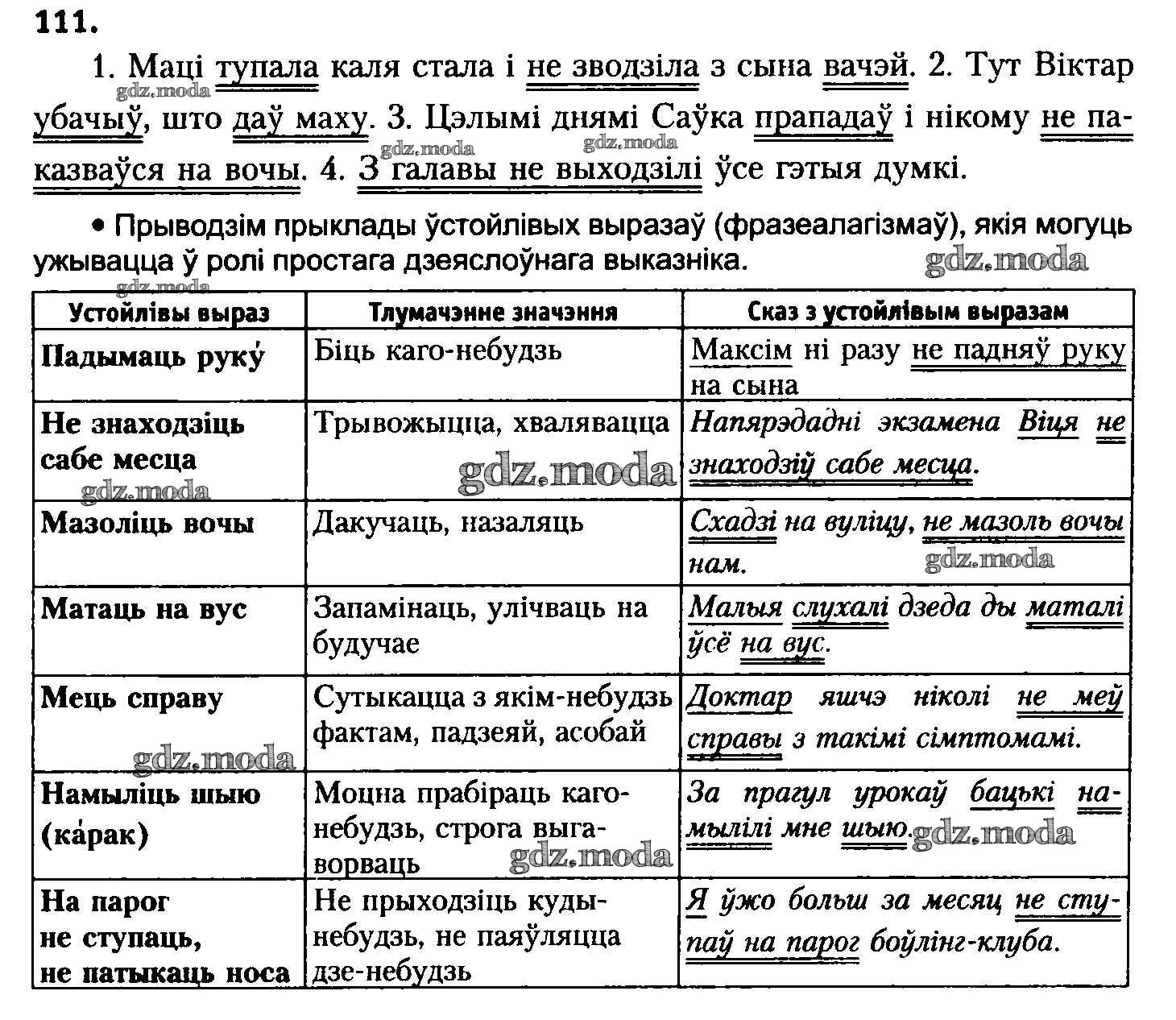 ГДЗ решение к заданию № 111 Белоруская мова 8 класс Бадзевіч З.І. Национальный институт образования 2015 ФГОС бесплатно на гдз.мода!