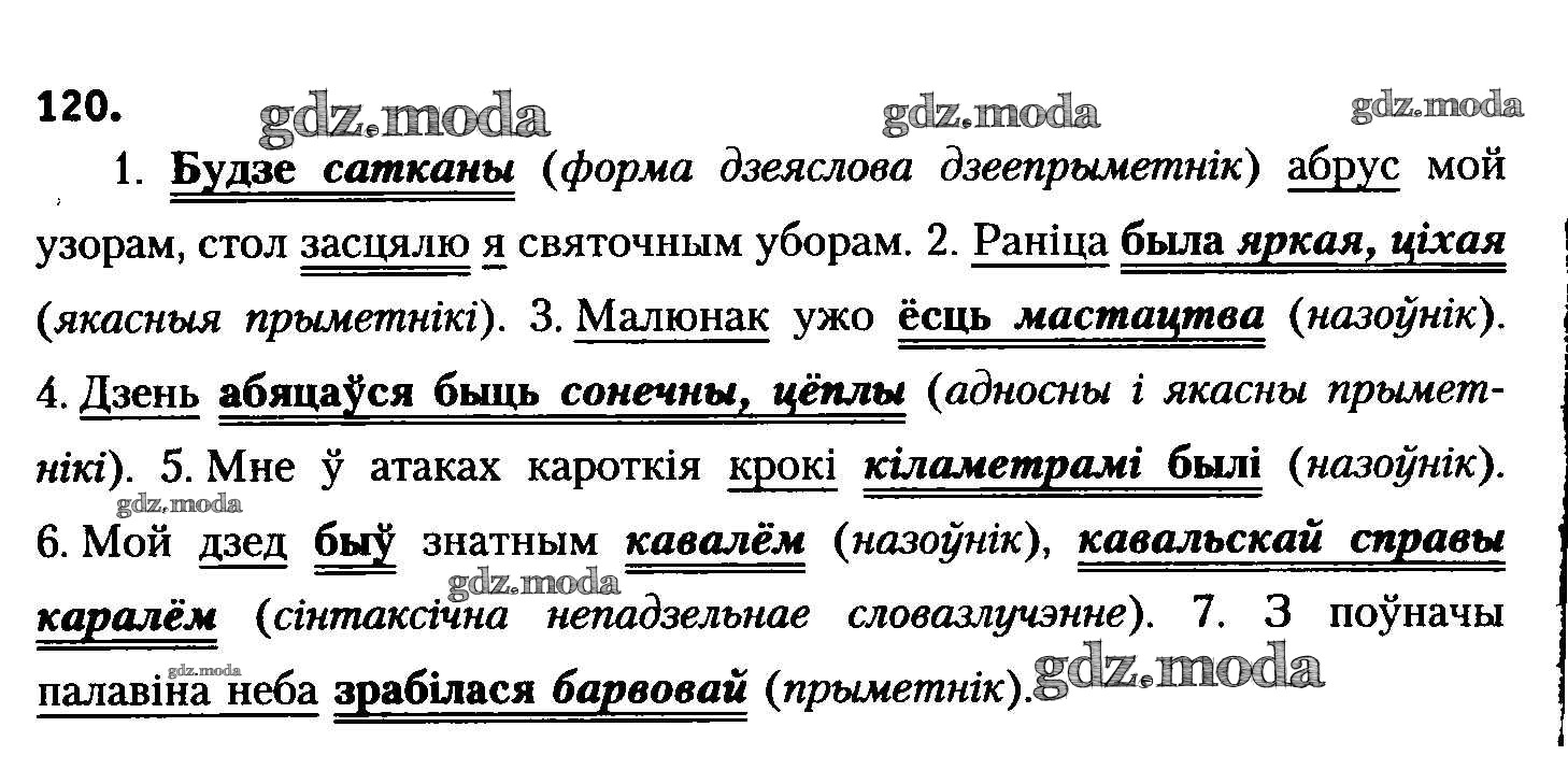 ГДЗ решение к заданию № 120 Белоруская мова 8 класс Бадзевіч З.І. Национальный институт образования 2015 ФГОС бесплатно на гдз.мода!