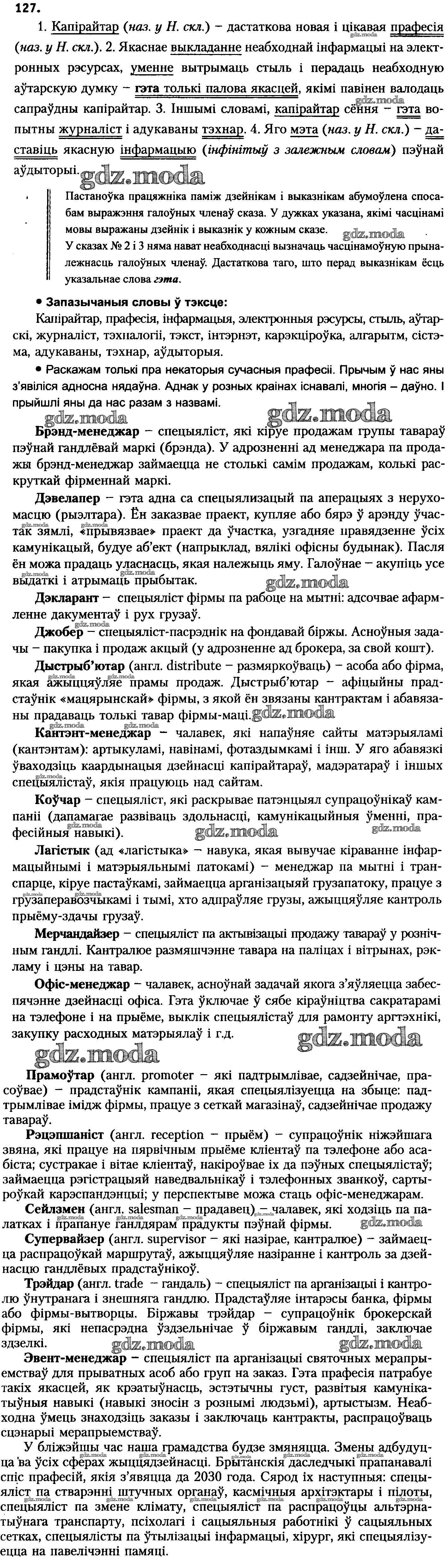 ГДЗ решение к заданию № 127 Белоруская мова 8 класс Бадзевіч З.І. Национальный институт образования 2015 ФГОС бесплатно на гдз.мода!