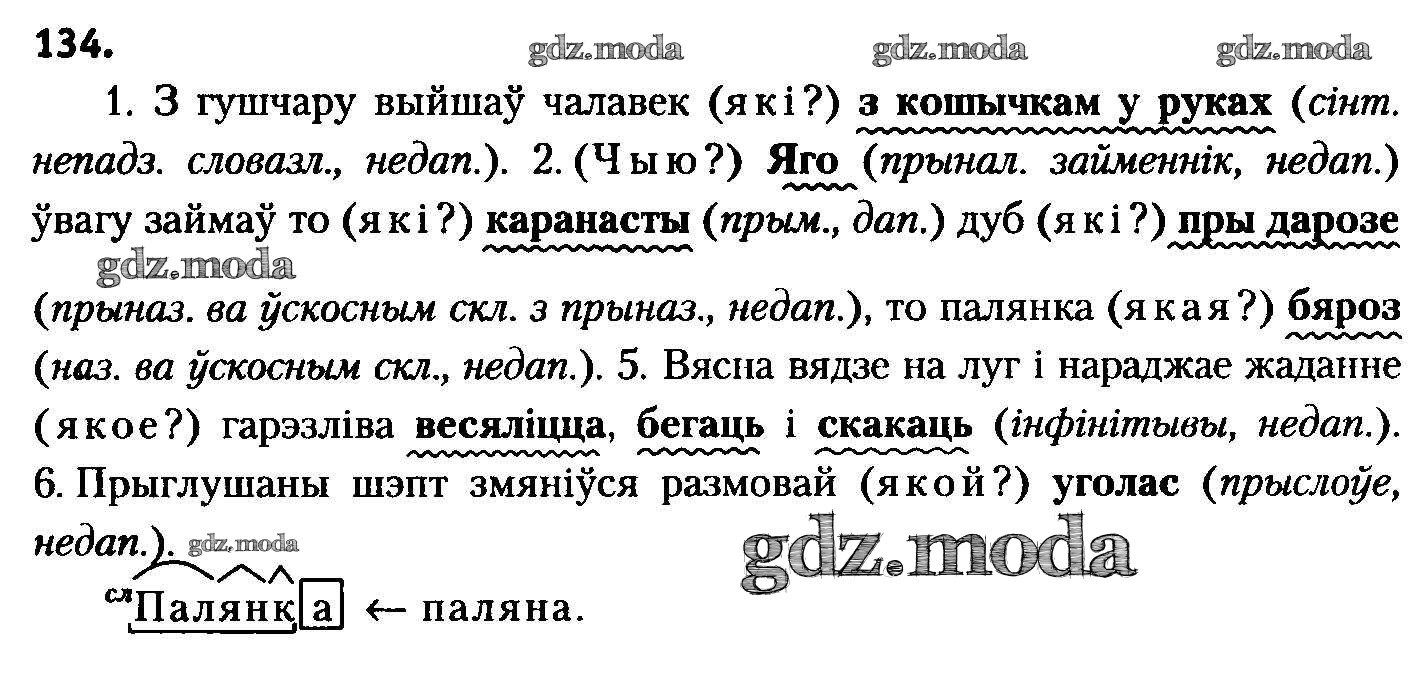 ГДЗ решение к заданию № 134 Белоруская мова 8 класс Бадзевіч З.І. Национальный институт образования 2015 ФГОС бесплатно на гдз.мода!