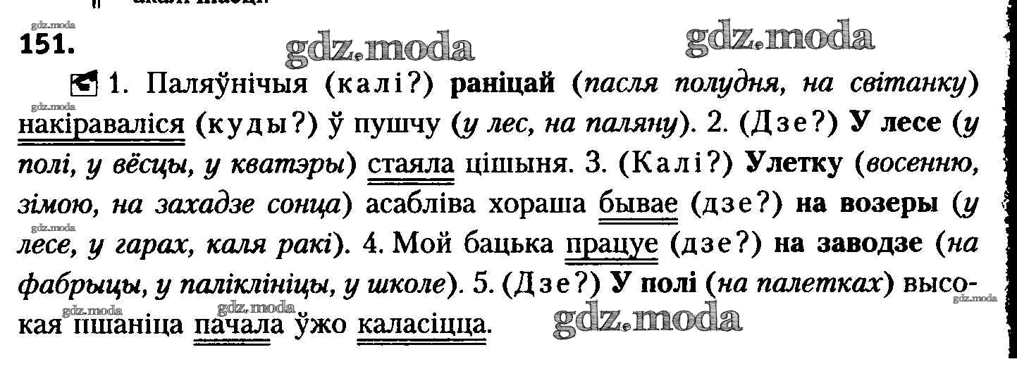 ГДЗ решение к заданию № 151 Белоруская мова 8 класс Бадзевіч З.І. Национальный институт образования 2015 ФГОС бесплатно на гдз.мода!