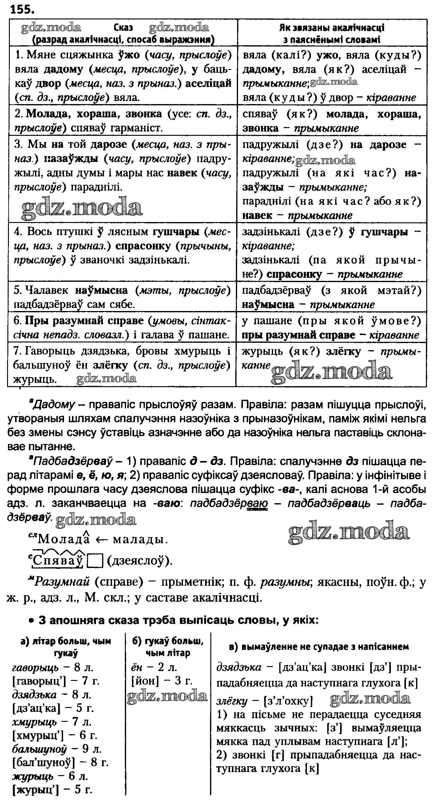 ГДЗ решение к заданию № 155 Белоруская мова 8 класс Бадзевіч З.І. Национальный институт образования 2015 ФГОС бесплатно на гдз.мода!