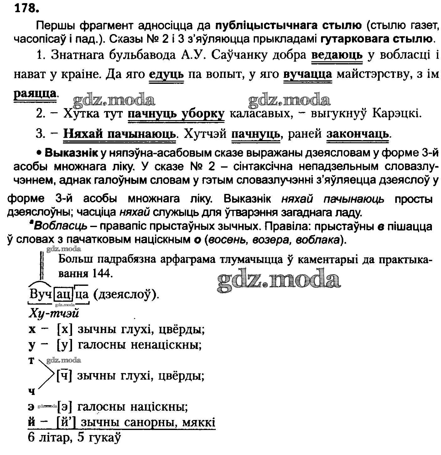 ГДЗ решение к заданию № 178 Белоруская мова 8 класс Бадзевіч З.І. Национальный институт образования 2015 ФГОС бесплатно на гдз.мода!
