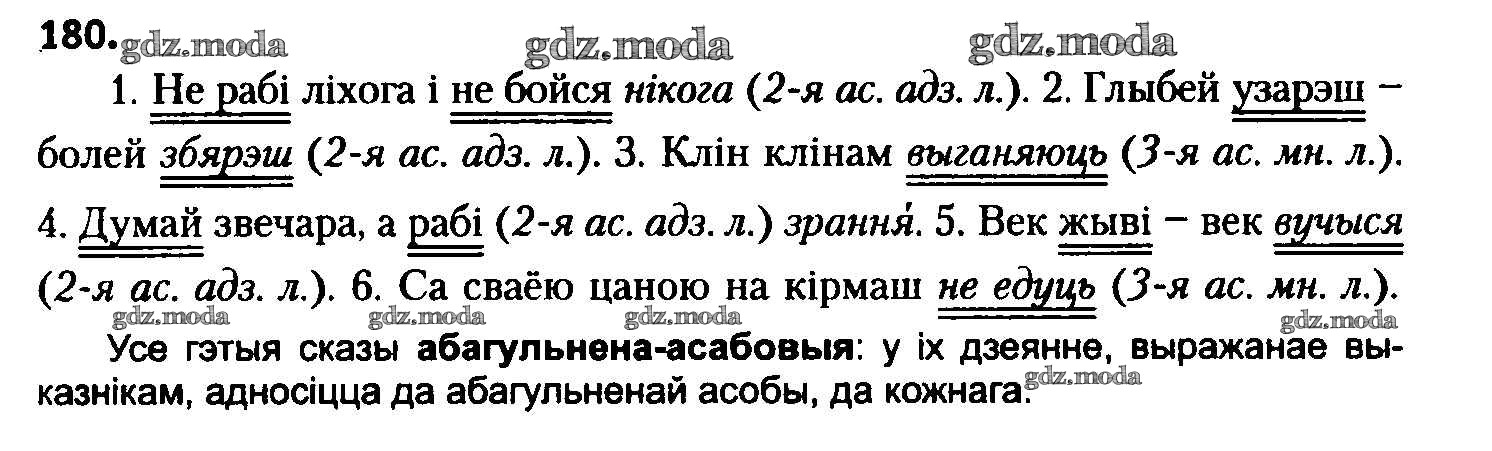 ГДЗ решение к заданию № 180 Белоруская мова 8 класс Бадзевіч З.І. Национальный институт образования 2015 ФГОС бесплатно на гдз.мода!