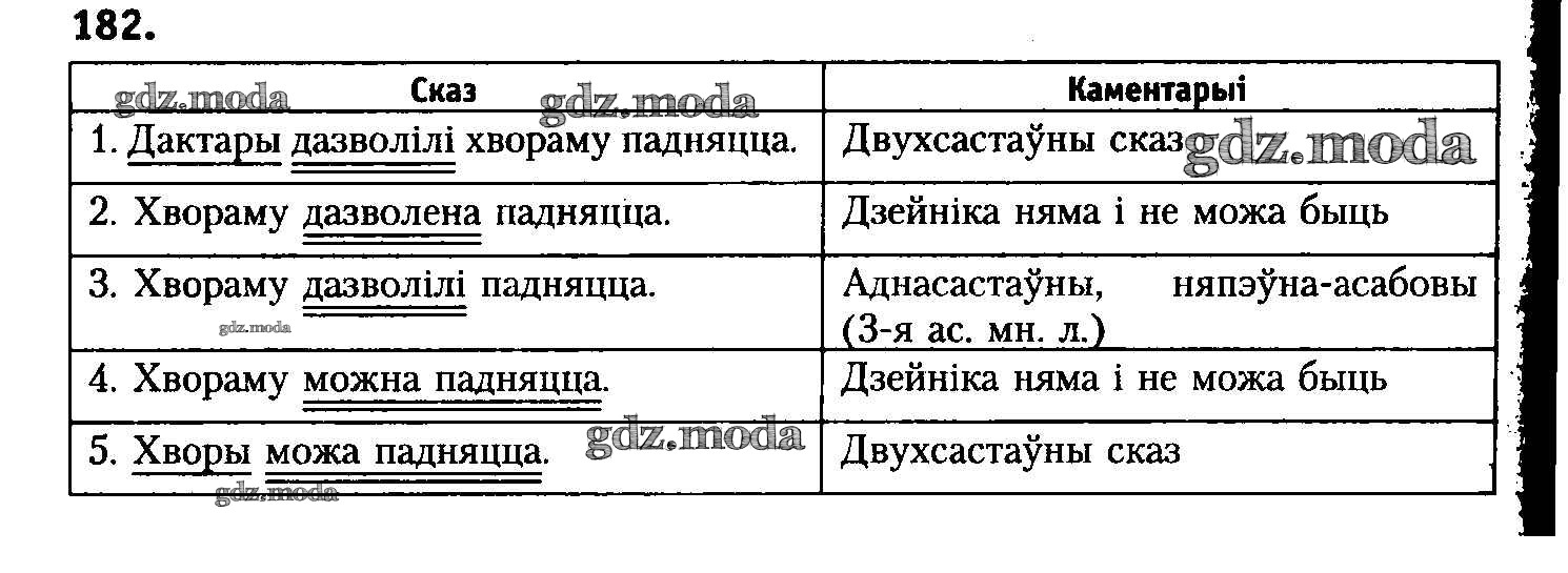 ГДЗ решение к заданию № 182 Белоруская мова 8 класс Бадзевіч З.І. Национальный институт образования 2015 ФГОС бесплатно на гдз.мода!