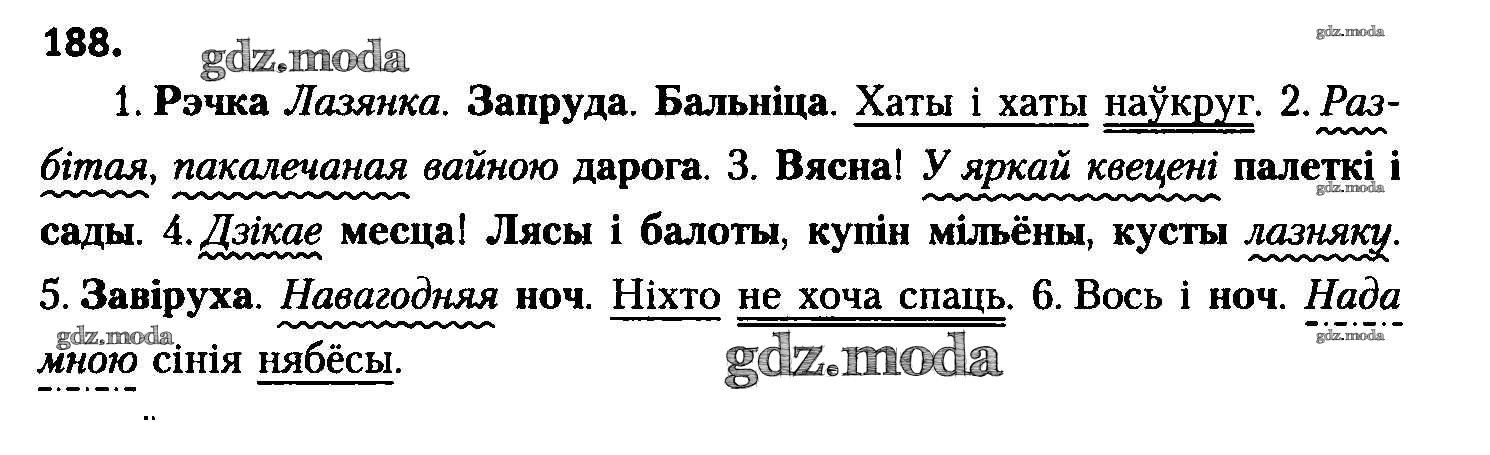 ГДЗ решение к заданию № 188 Белоруская мова 8 класс Бадзевіч З.І. Национальный институт образования 2015 ФГОС бесплатно на гдз.мода!