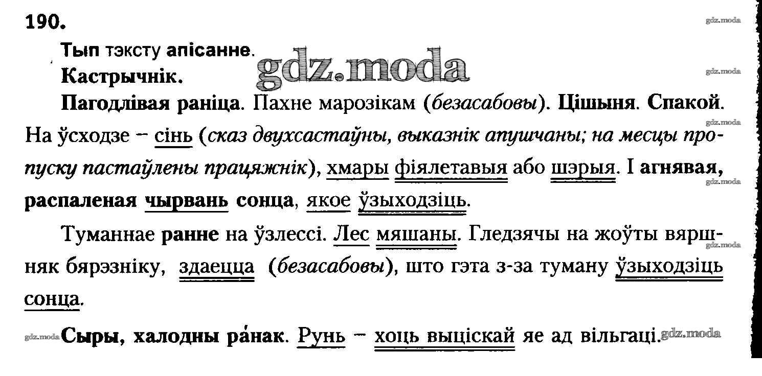 ГДЗ решение к заданию № 190 Белоруская мова 8 класс Бадзевіч З.І. Национальный институт образования 2015 ФГОС бесплатно на гдз.мода!