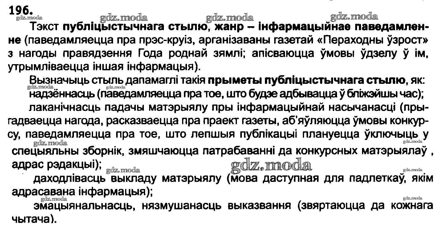 ГДЗ решение к заданию № 196 Белоруская мова 8 класс Бадзевіч З.І. Национальный институт образования 2015 ФГОС бесплатно на гдз.мода!