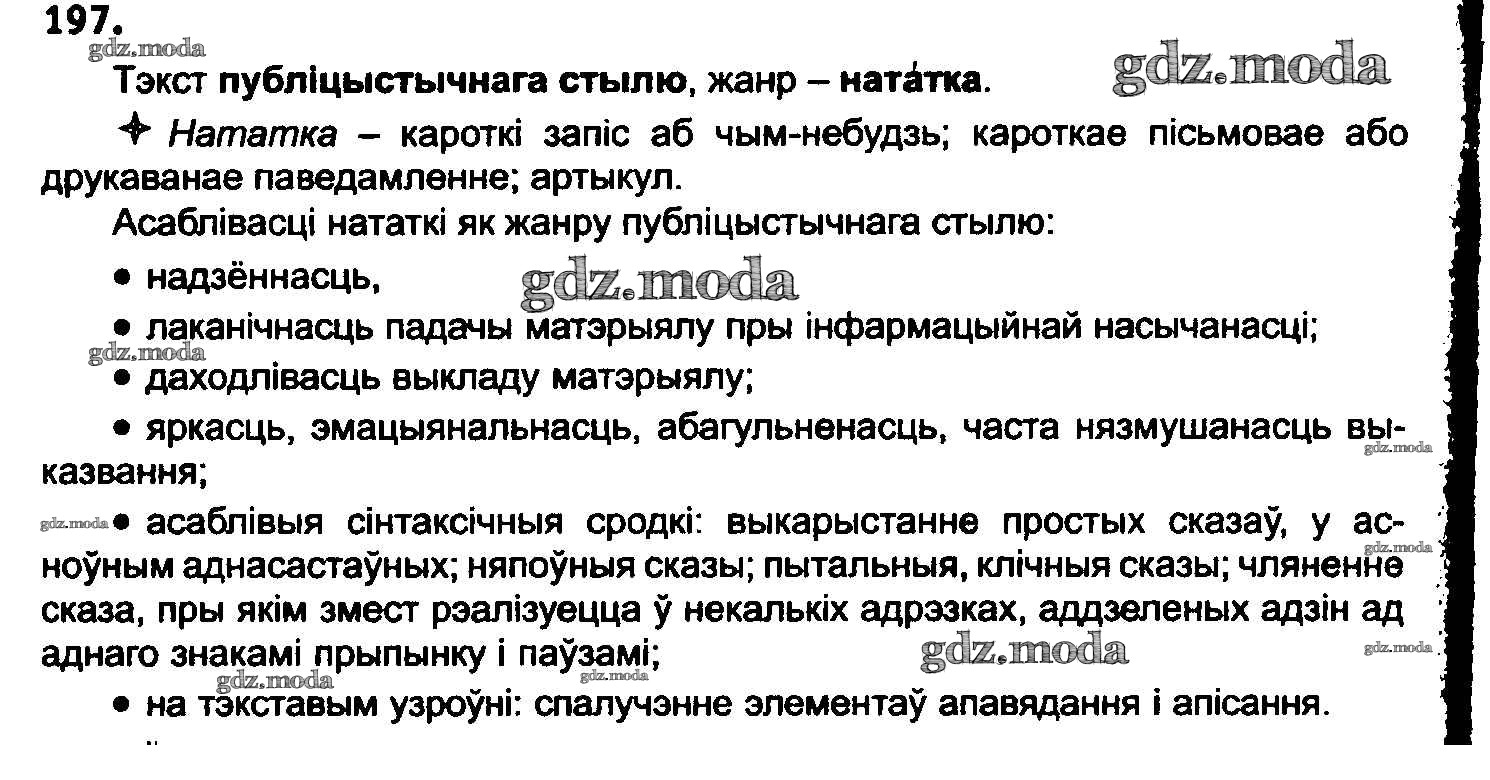 ОТВЕТ на задание № 197 Учебник по Белорусскому языку 8 класс Бадзевіч