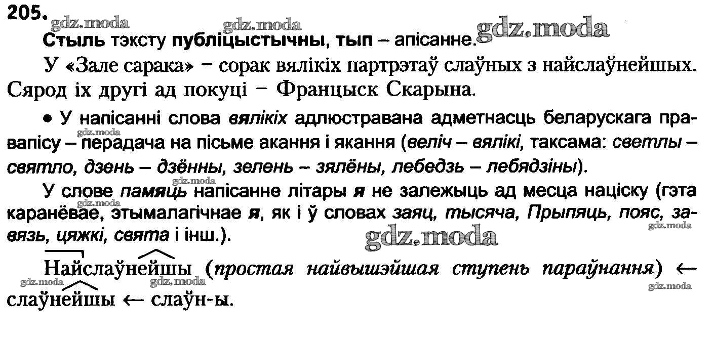 ГДЗ решение к заданию № 205 Белоруская мова 8 класс Бадзевіч З.І. Национальный институт образования 2015 ФГОС бесплатно на гдз.мода!