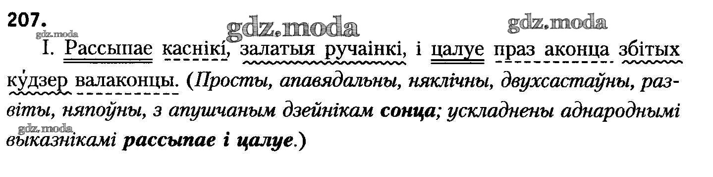 ГДЗ решение к заданию № 207 Белоруская мова 8 класс Бадзевіч З.І. Национальный институт образования 2015 ФГОС бесплатно на гдз.мода!