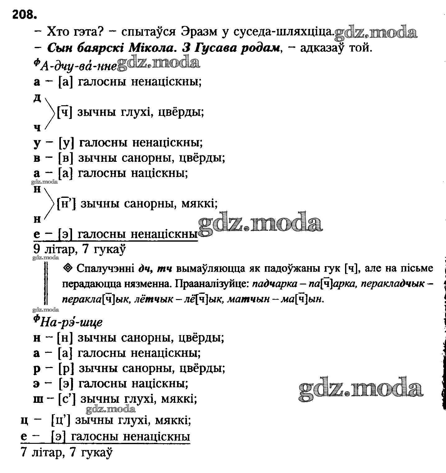 ГДЗ решение к заданию № 208 Белоруская мова 8 класс Бадзевіч З.І. Национальный институт образования 2015 ФГОС бесплатно на гдз.мода!