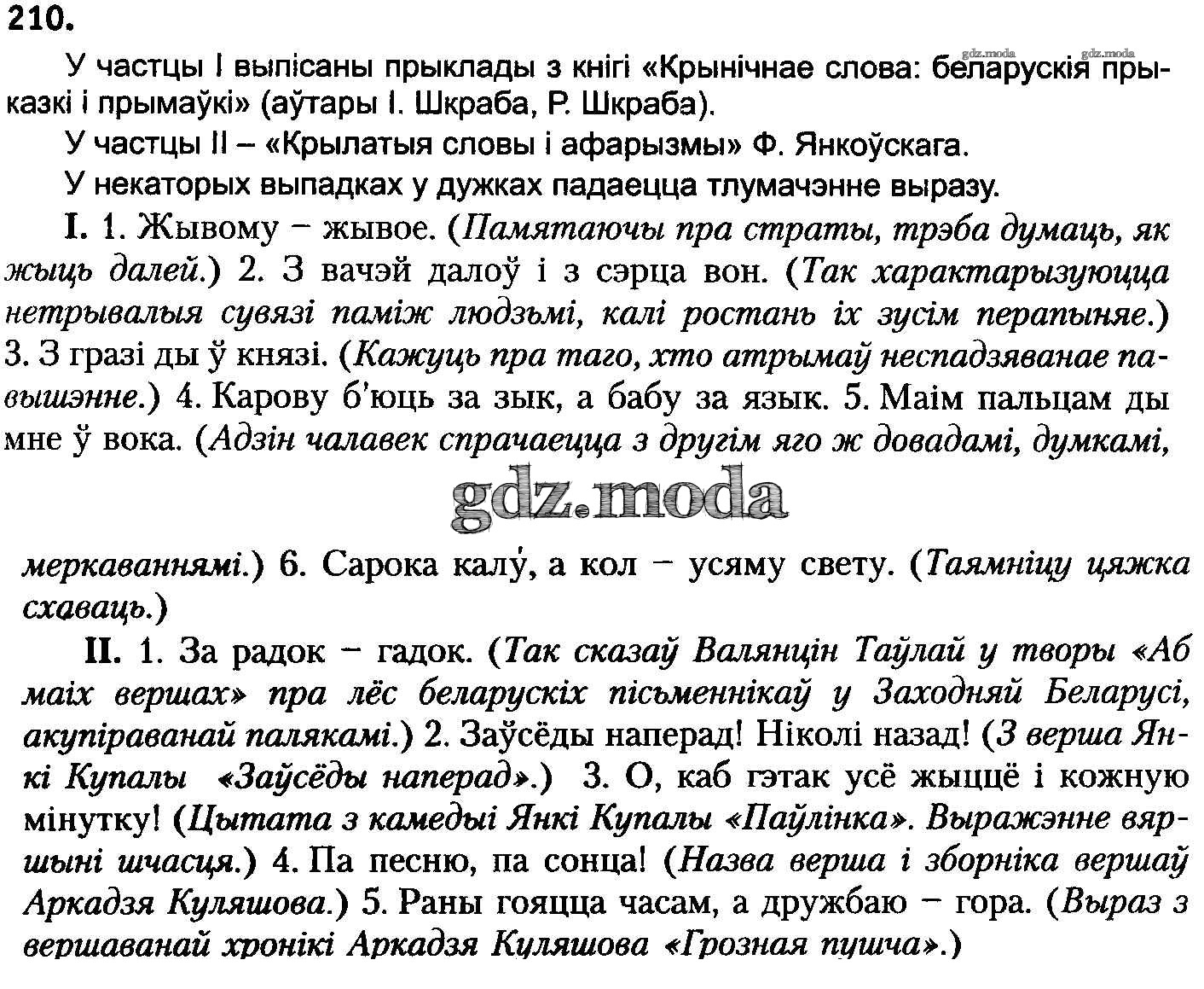 ГДЗ решение к заданию № 210 Белоруская мова 8 класс Бадзевіч З.І. Национальный институт образования 2015 ФГОС бесплатно на гдз.мода!