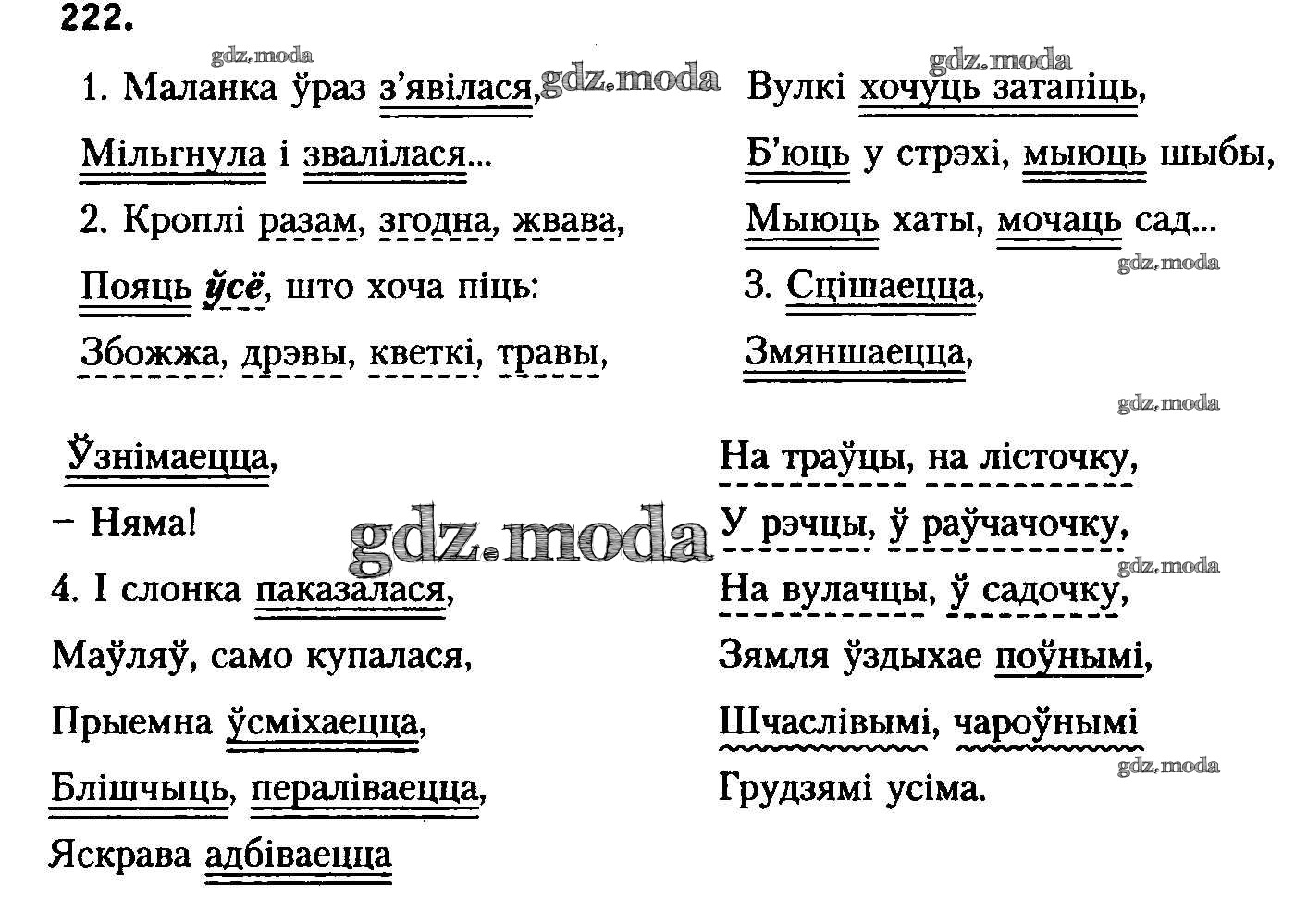 ГДЗ решение к заданию № 222 Белоруская мова 8 класс Бадзевіч З.І. Национальный институт образования 2015 ФГОС бесплатно на гдз.мода!