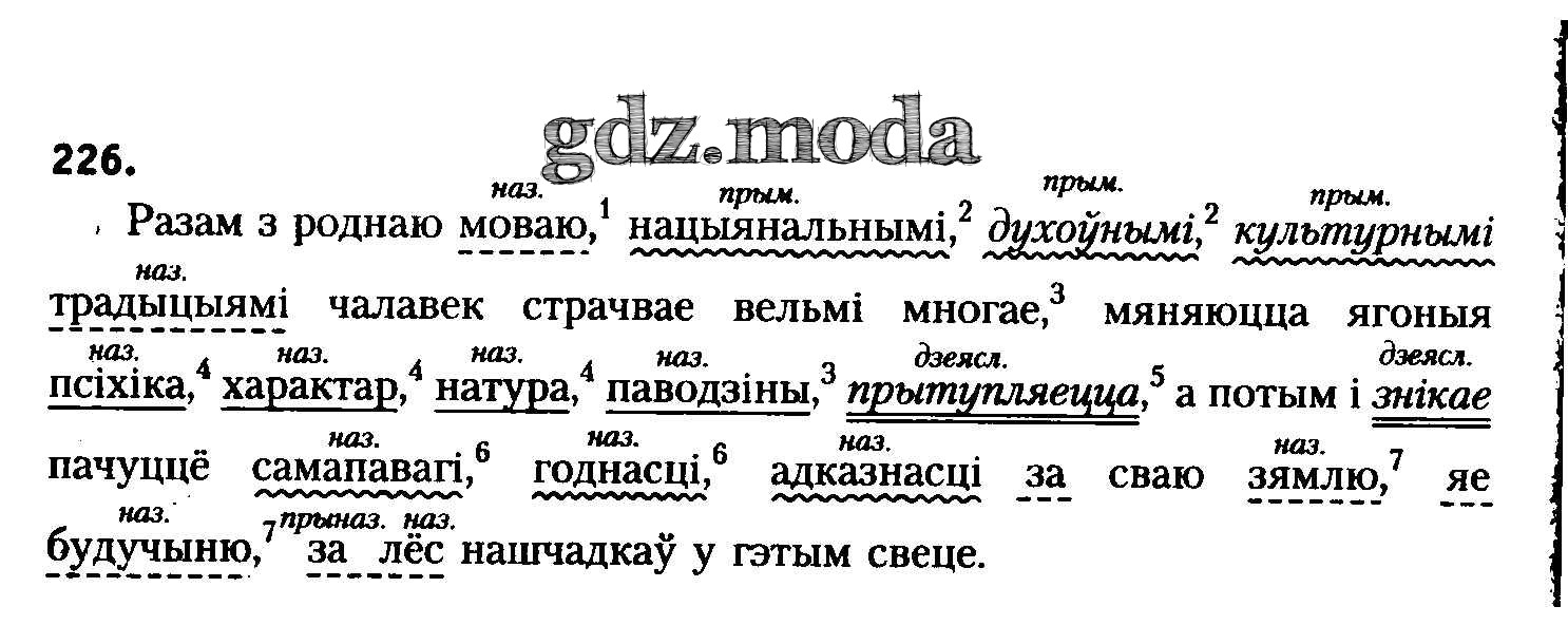 ГДЗ решение к заданию № 226 Белоруская мова 8 класс Бадзевіч З.І. Национальный институт образования 2015 ФГОС бесплатно на гдз.мода!