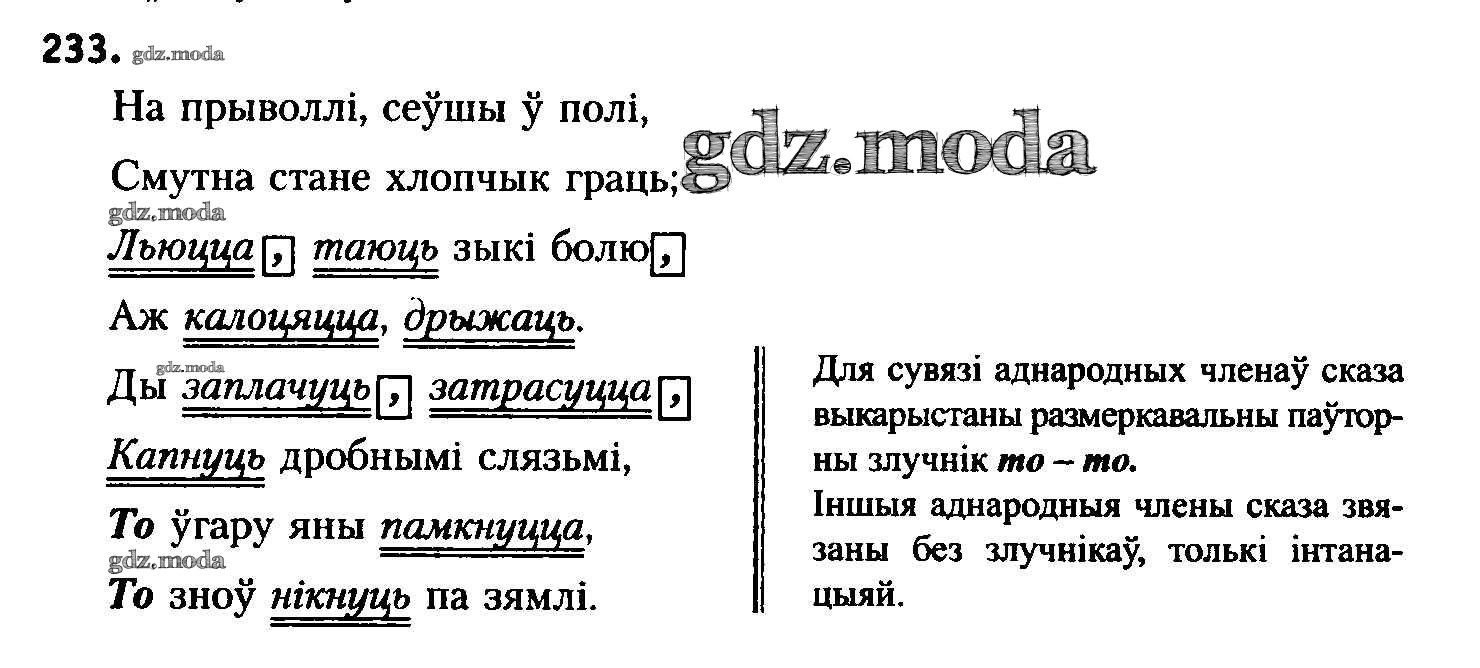 ГДЗ решение к заданию № 233 Белоруская мова 8 класс Бадзевіч З.І. Национальный институт образования 2015 ФГОС бесплатно на гдз.мода!