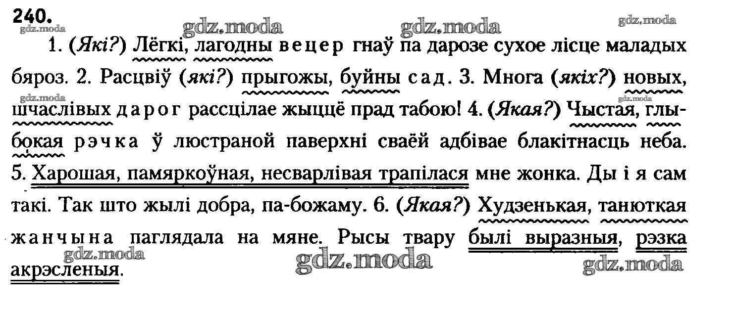 ГДЗ решение к заданию № 240 Белоруская мова 8 класс Бадзевіч З.І. Национальный институт образования 2015 ФГОС бесплатно на гдз.мода!