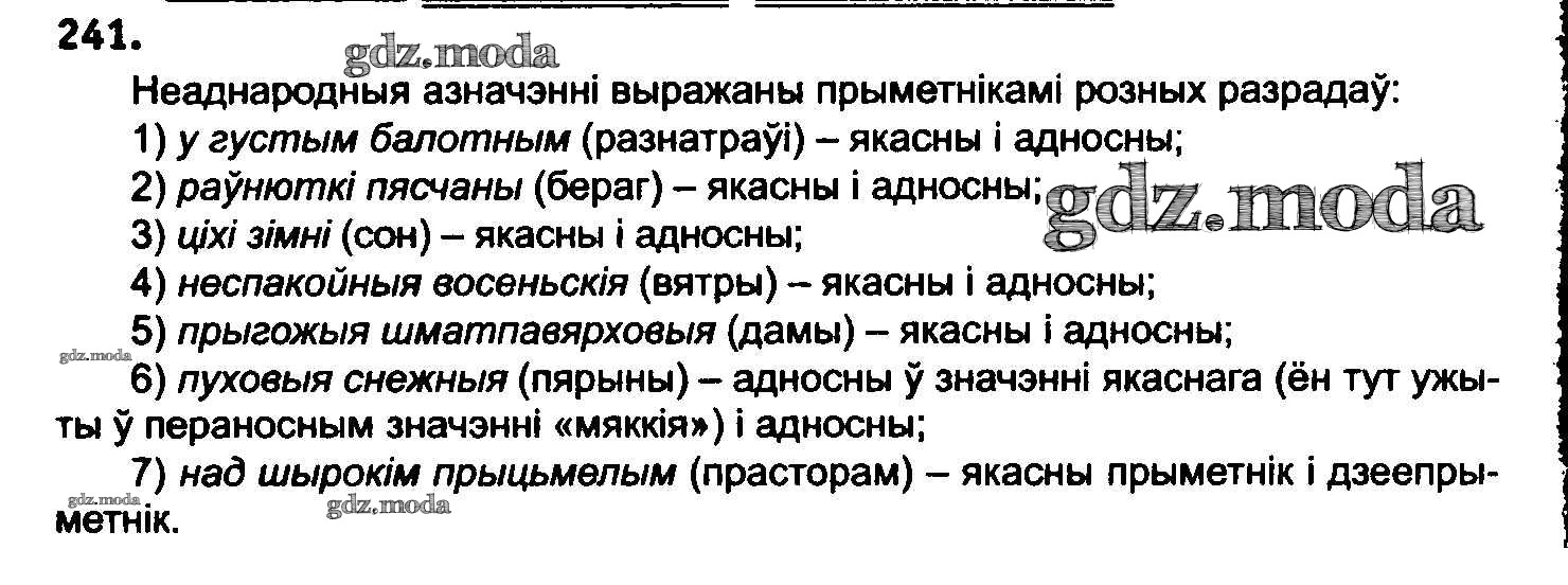 ГДЗ решение к заданию № 241 Белоруская мова 8 класс Бадзевіч З.І. Национальный институт образования 2015 ФГОС бесплатно на гдз.мода!