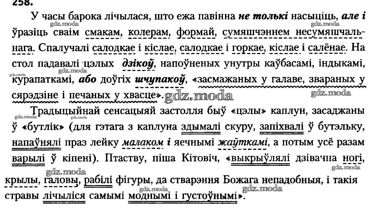 ГДЗ решение к заданию № 258 Белоруская мова 8 класс Бадзевіч З.І. Национальный институт образования 2015 ФГОС бесплатно на гдз.мода!