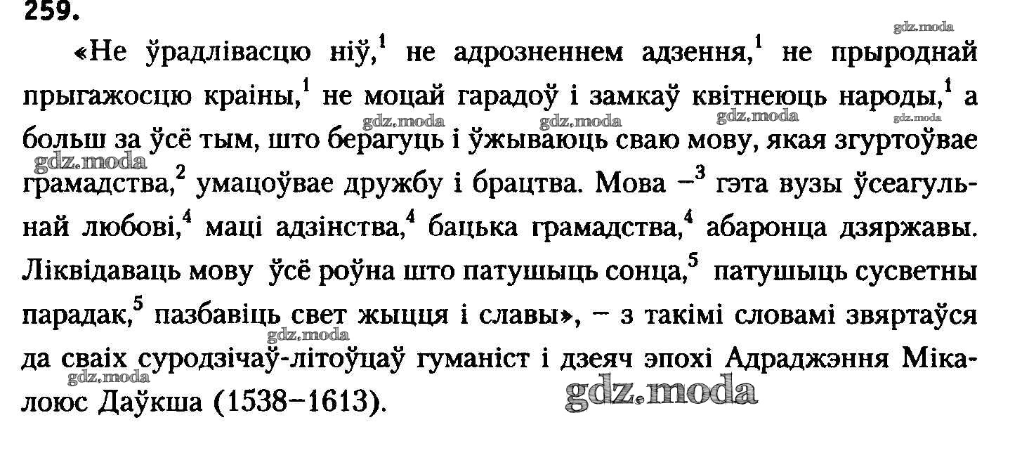 ГДЗ решение к заданию № 259 Белоруская мова 8 класс Бадзевіч З.І. Национальный институт образования 2015 ФГОС бесплатно на гдз.мода!