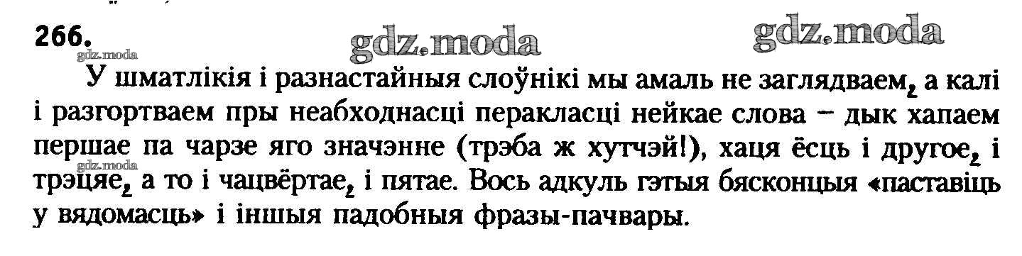 ГДЗ решение к заданию № 266 Белоруская мова 8 класс Бадзевіч З.І. Национальный институт образования 2015 ФГОС бесплатно на гдз.мода!