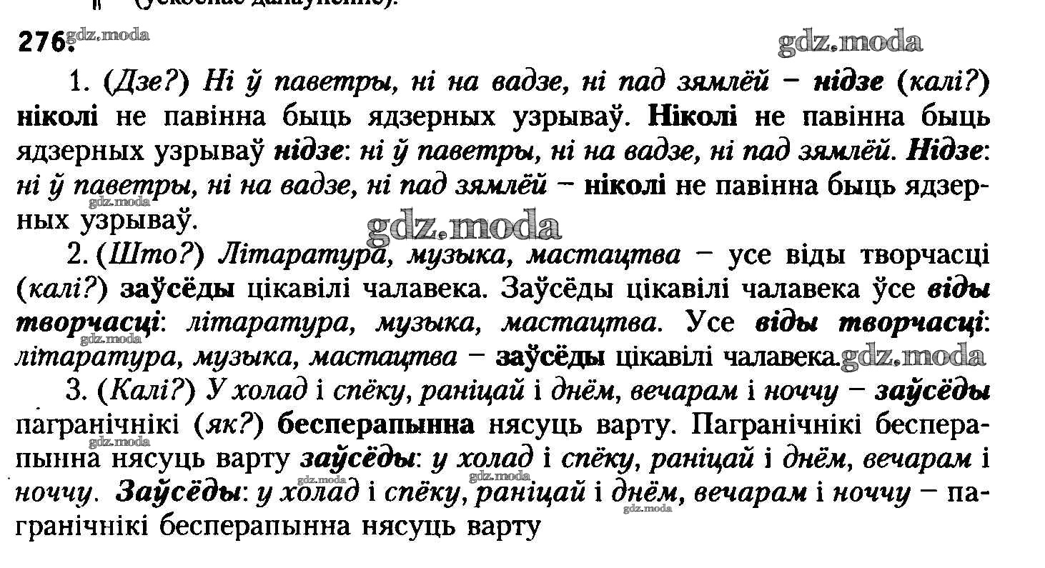 ГДЗ решение к заданию № 276 Белоруская мова 8 класс Бадзевіч З.І. Национальный институт образования 2015 ФГОС бесплатно на гдз.мода!