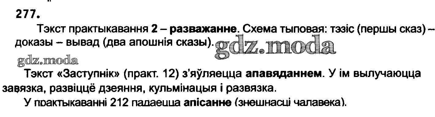 ГДЗ решение к заданию № 277 Белоруская мова 8 класс Бадзевіч З.І. Национальный институт образования 2015 ФГОС бесплатно на гдз.мода!