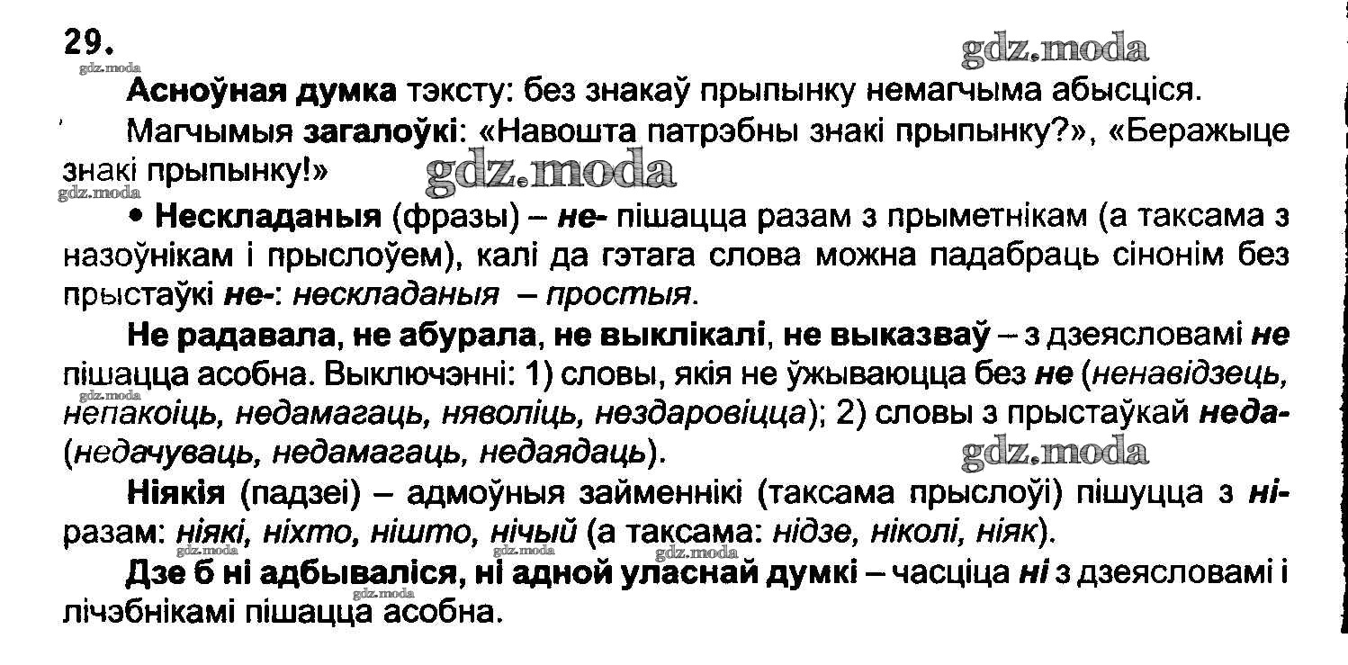 ГДЗ решение к заданию № 29 Белоруская мова 8 класс Бадзевіч З.І. Национальный институт образования 2015 ФГОС бесплатно на гдз.мода!
