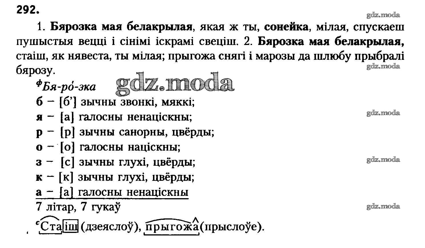 ГДЗ решение к заданию № 292 Белоруская мова 8 класс Бадзевіч З.І. Национальный институт образования 2015 ФГОС бесплатно на гдз.мода!