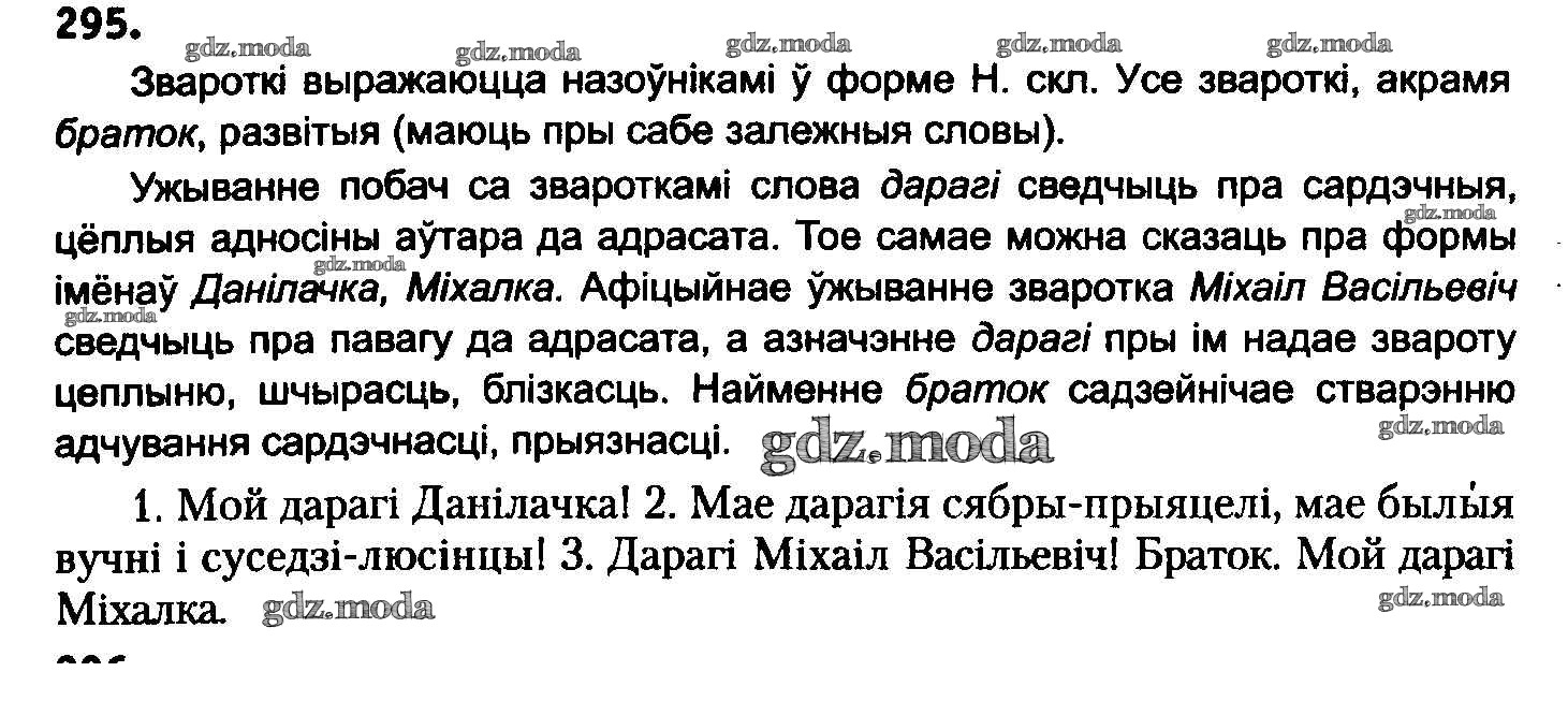 ГДЗ решение к заданию № 295 Белоруская мова 8 класс Бадзевіч З.І. Национальный институт образования 2015 ФГОС бесплатно на гдз.мода!